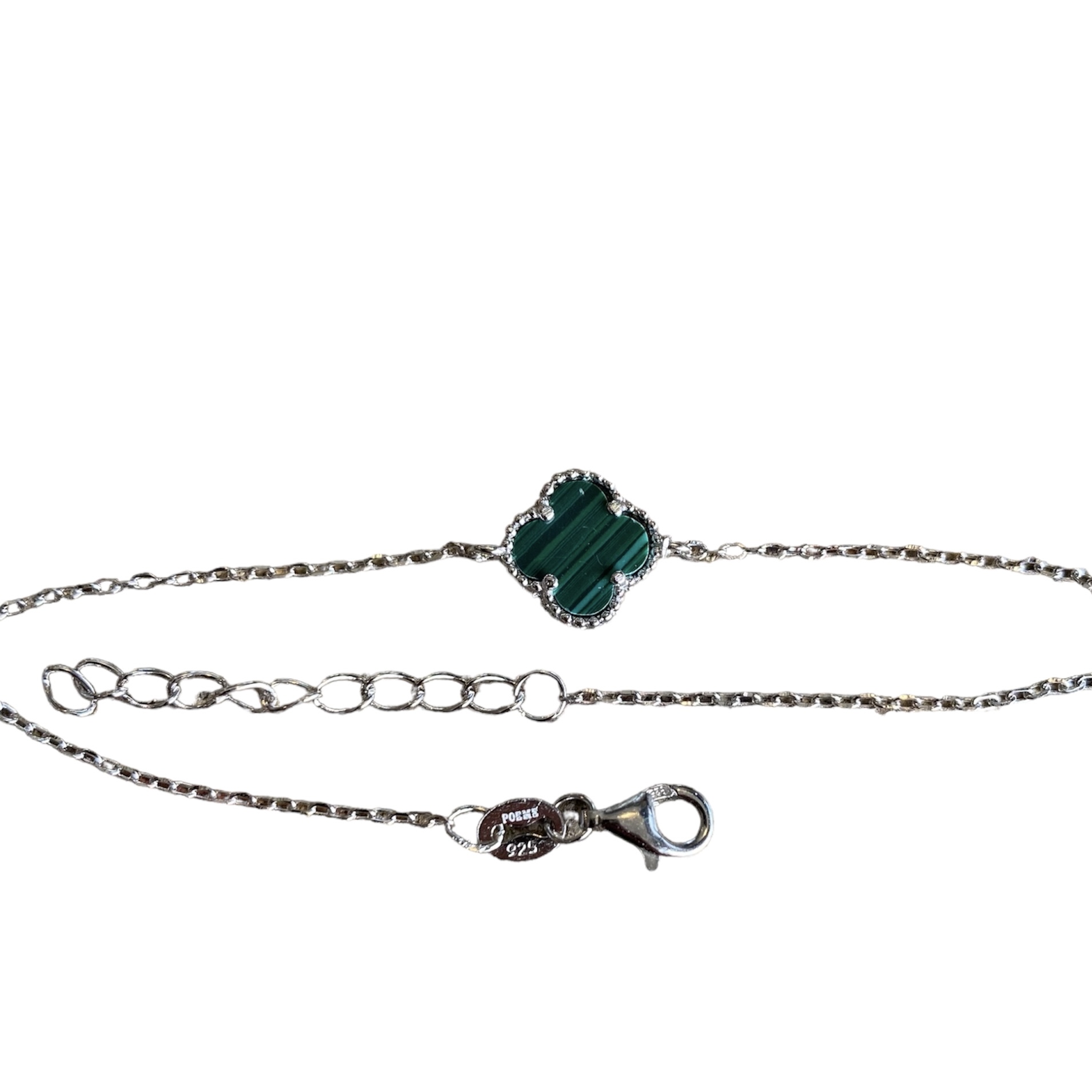 Armbånd i sølv m. grønn kløver