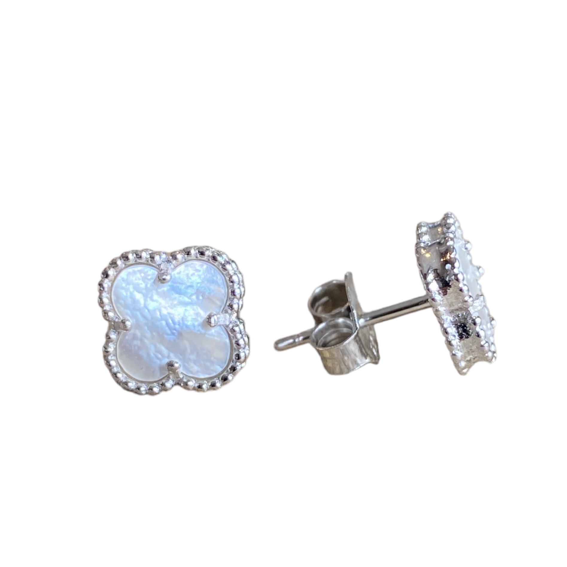 Øredobber i sølv m. perlemor kløver