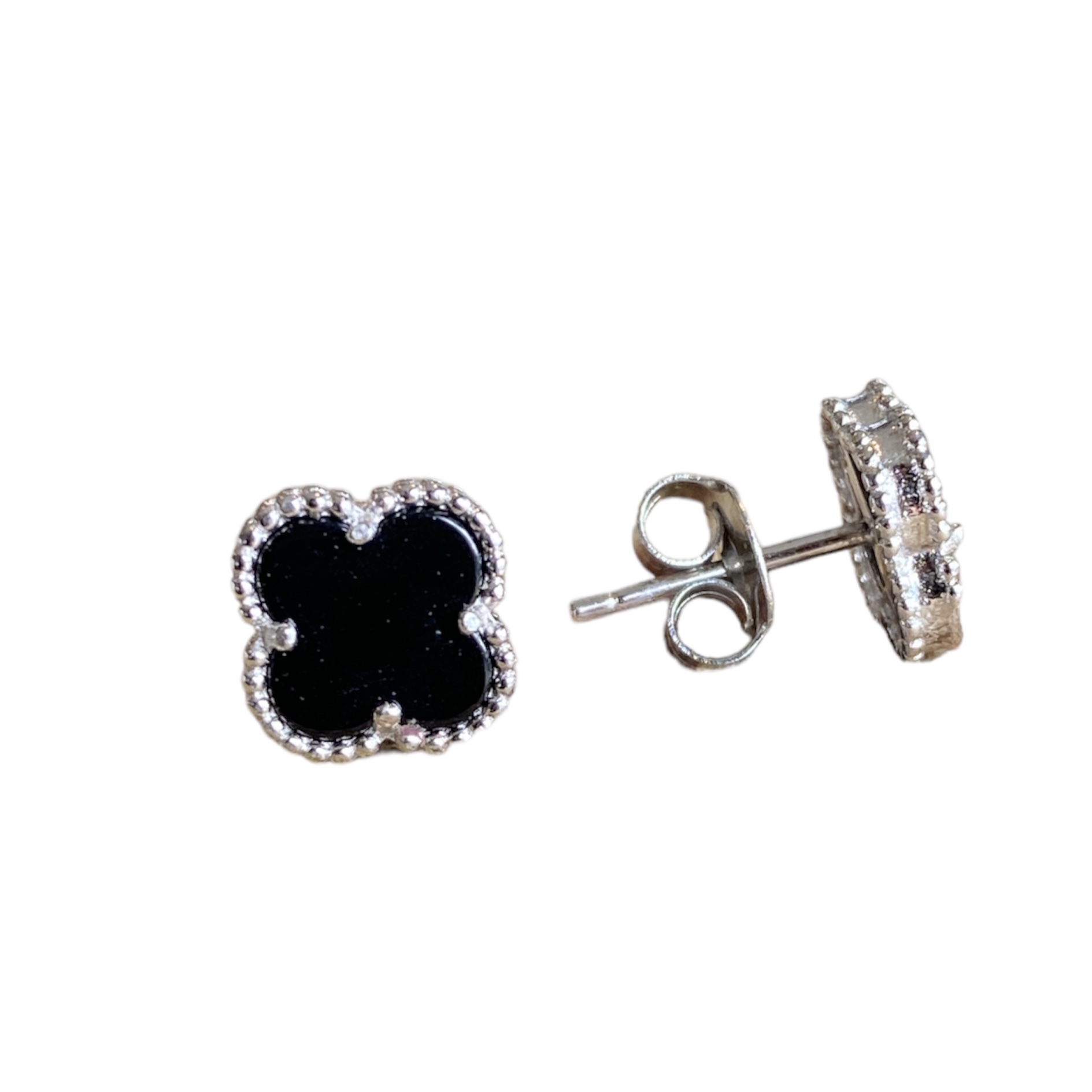 Øredobber i sølv m. svart kløver