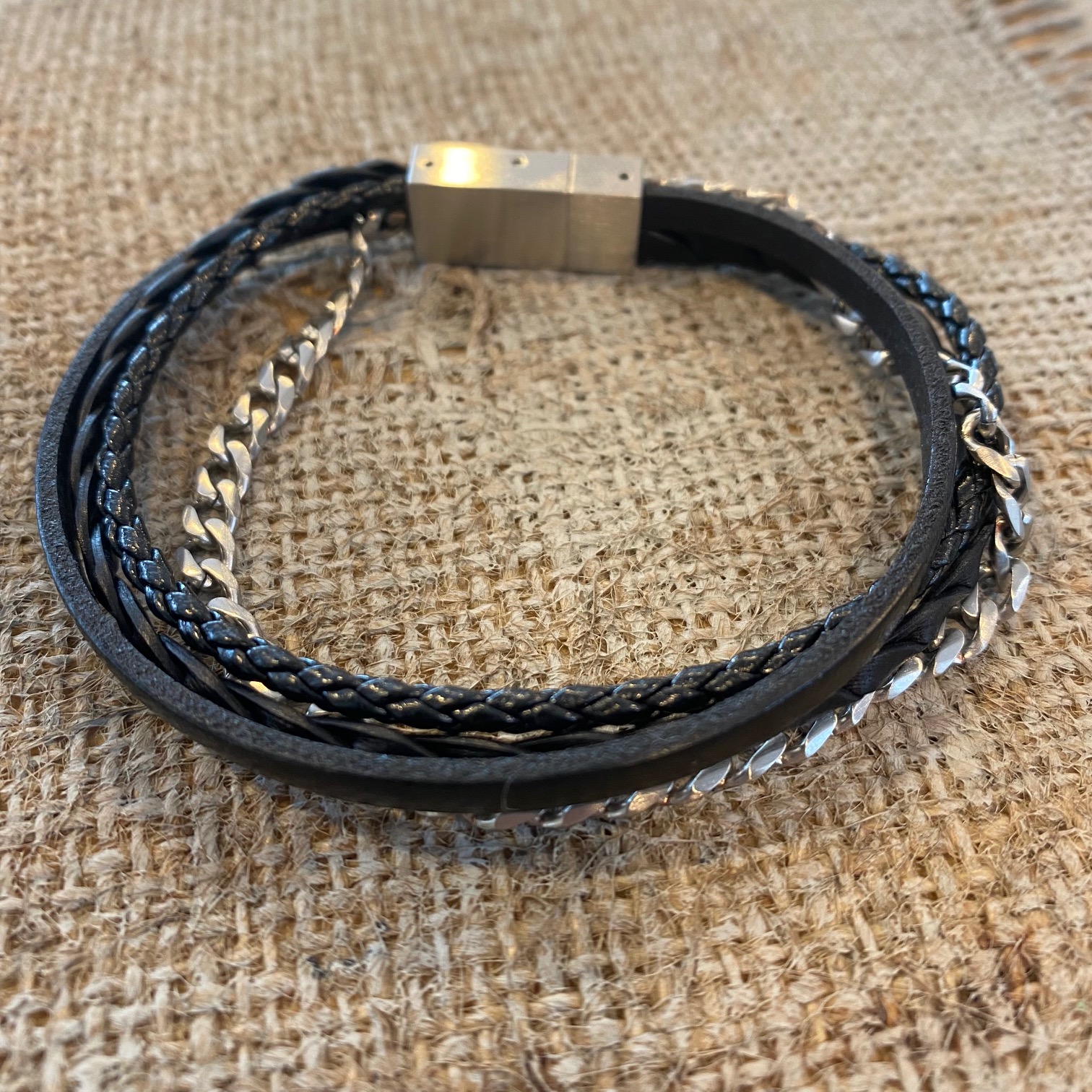 SARA - Svart tre deler & panser lærarmbånd 10mm