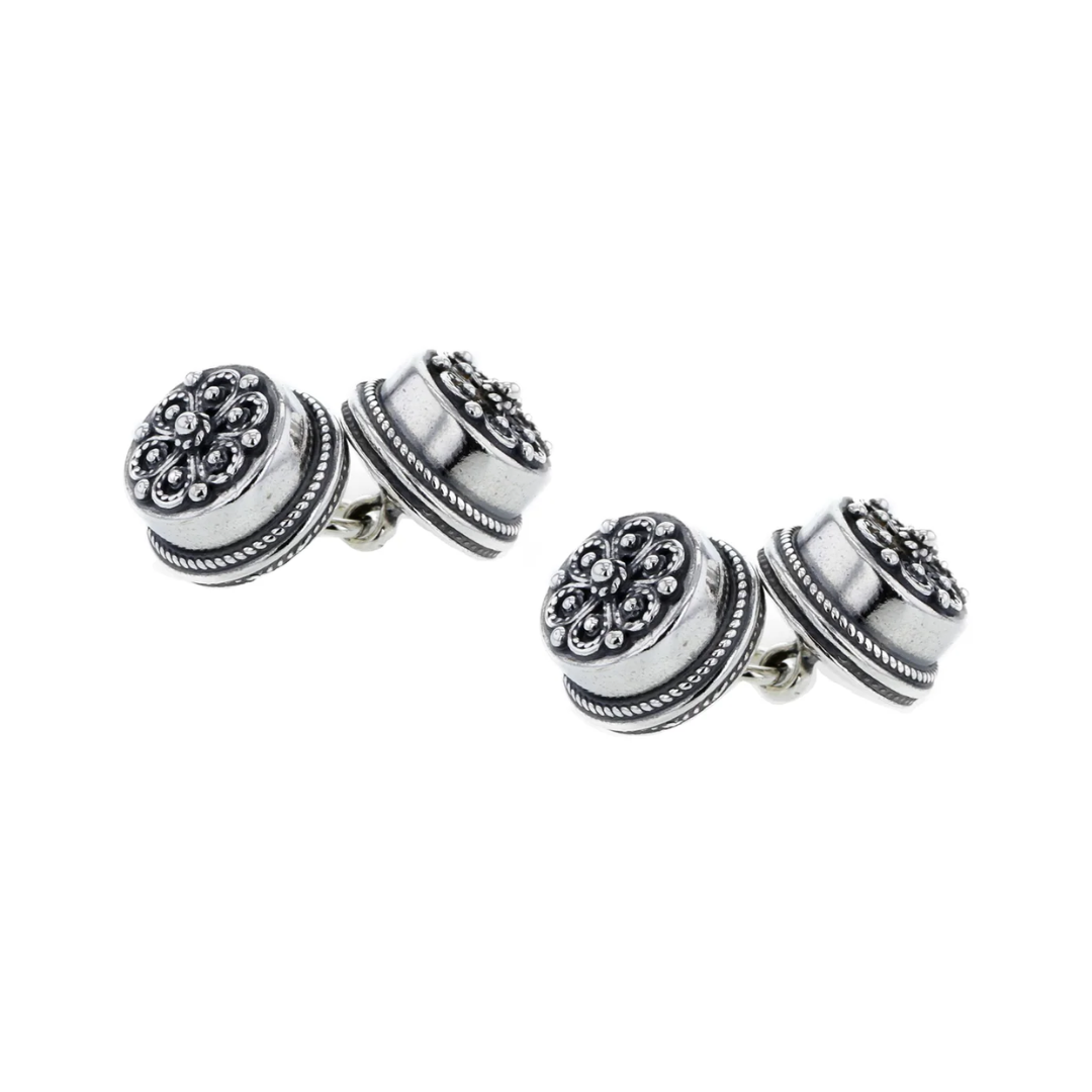 Mansjettknappar i oksidert sølv.