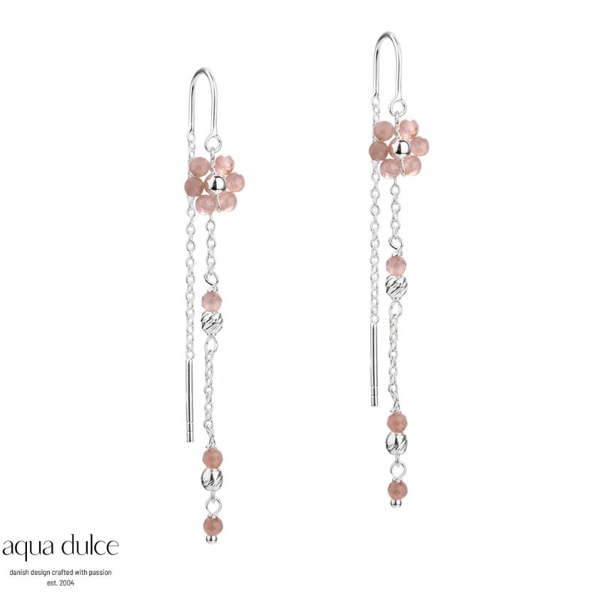Øretråde i sterling sølv med rosa blomster & twisted kuler.