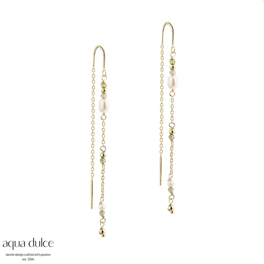 Beskrivelse Hvite ferskvannsperler, grønne perler og små forgylte sølvkuler. - 100 % nikkelfri - 925 Sterling sølv, forgylt - Lengde: 6cm |