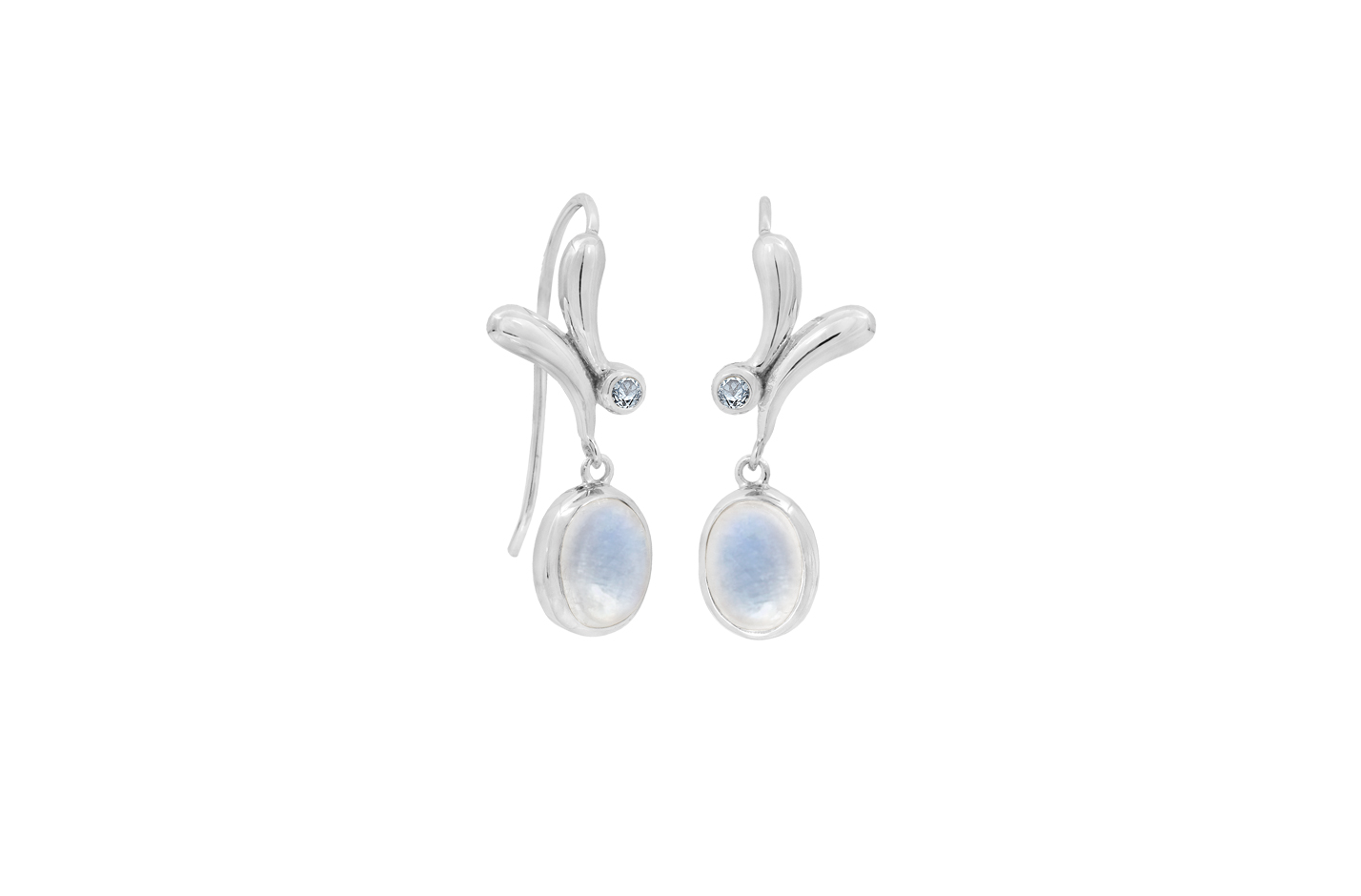 8x6mm rainbow månesten, 2mm sky blue topas