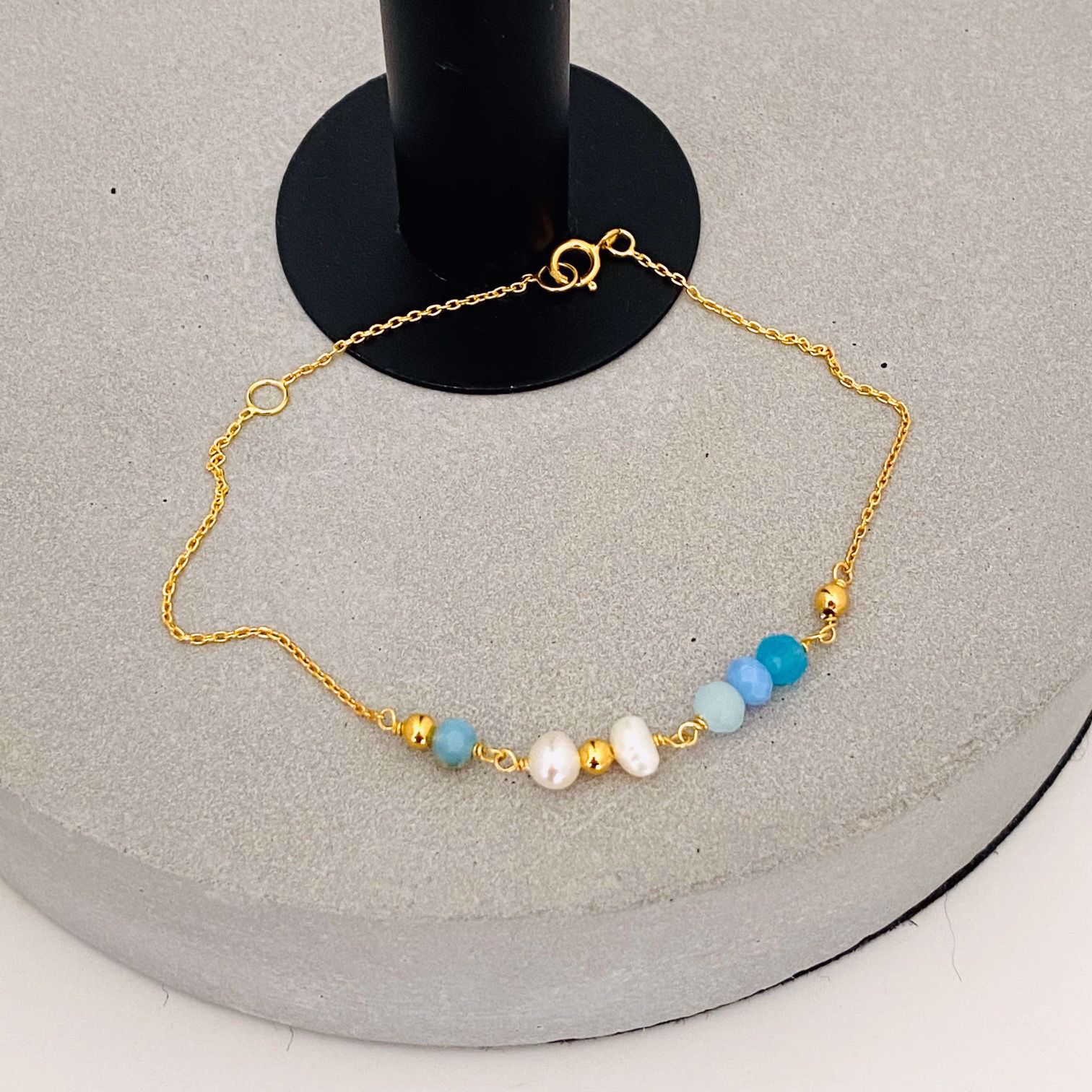 SEVILLE - Forgylt sølv armbånd med blåsteiner & perler
