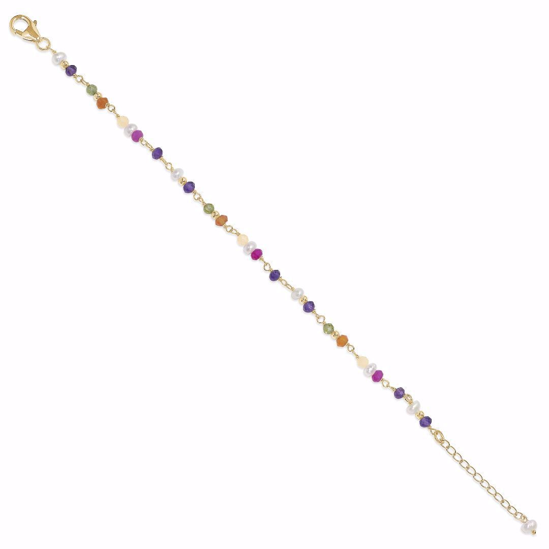 SEVILLE - Forgylt sølv armbånd med multi steiner & perler