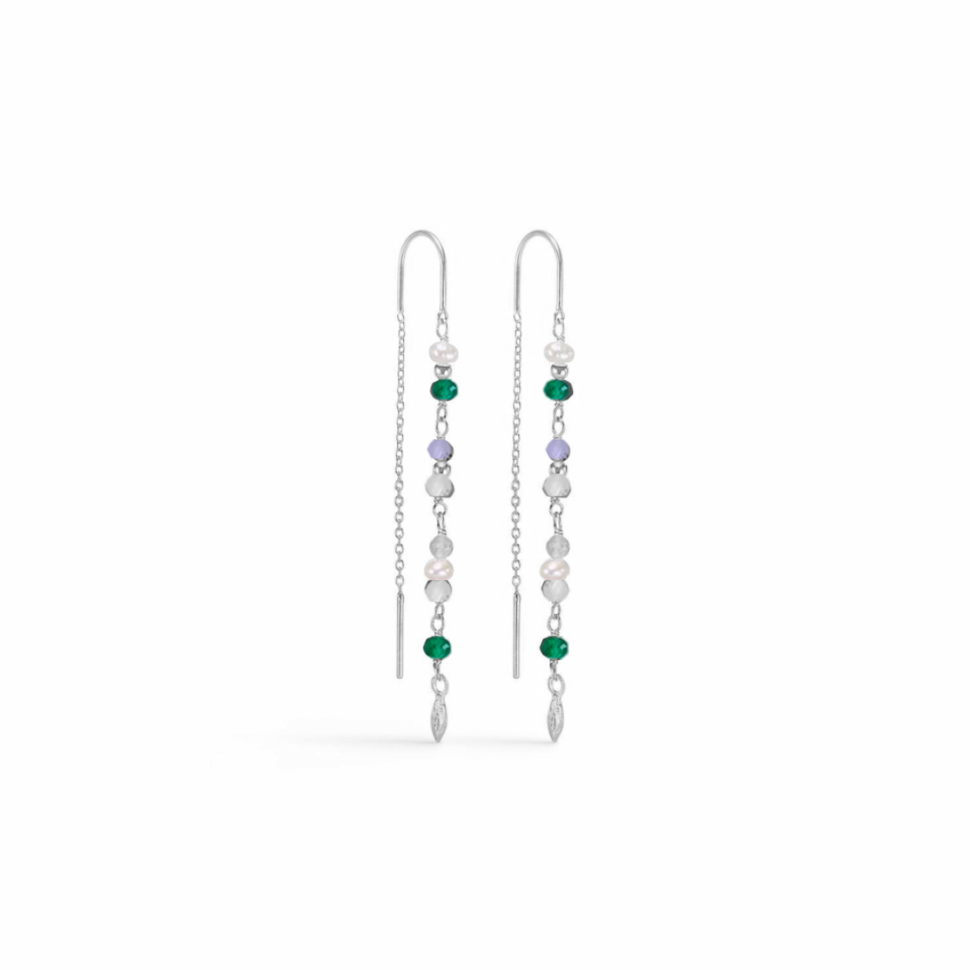 SEVILLE - Forgylt sølv øretråd med grønne steiner & perler