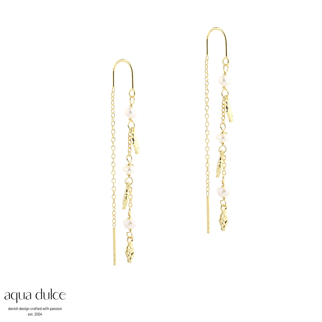 Beskrivelse Hvite ferskvannsperler, grønne perler og små forgylte sølvkuler. - 100 % nikkelfri - 925 Sterling sølv, forgylt - Lengde: 6cm |