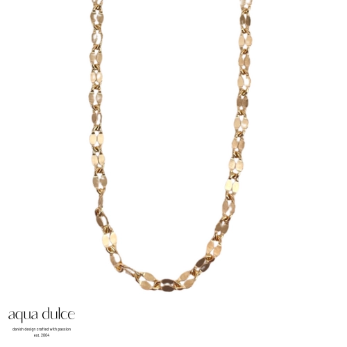 Halskjede i forgylt sølv med plater.