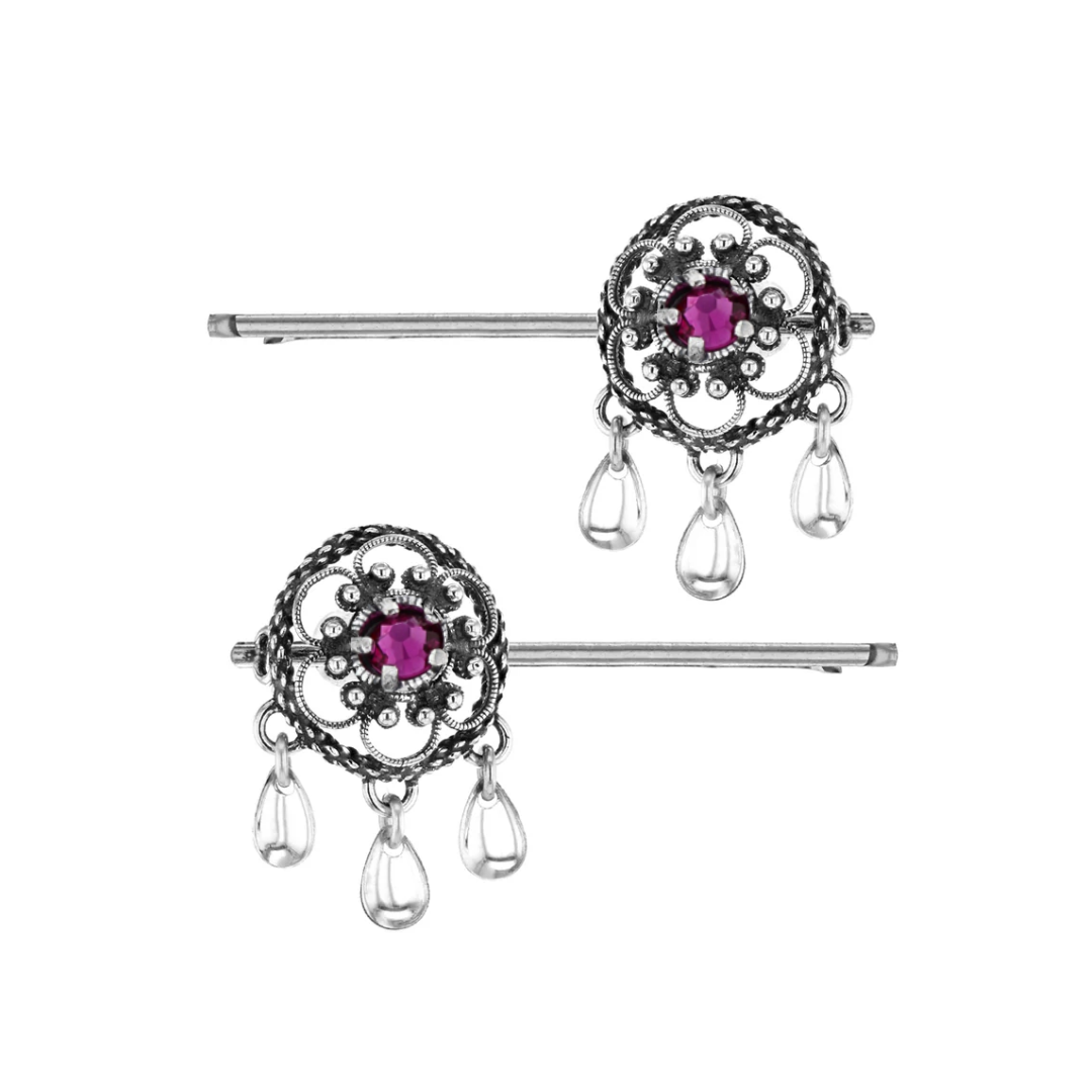 Hårnåli oksidert sølv med løv og stein i farge 09.