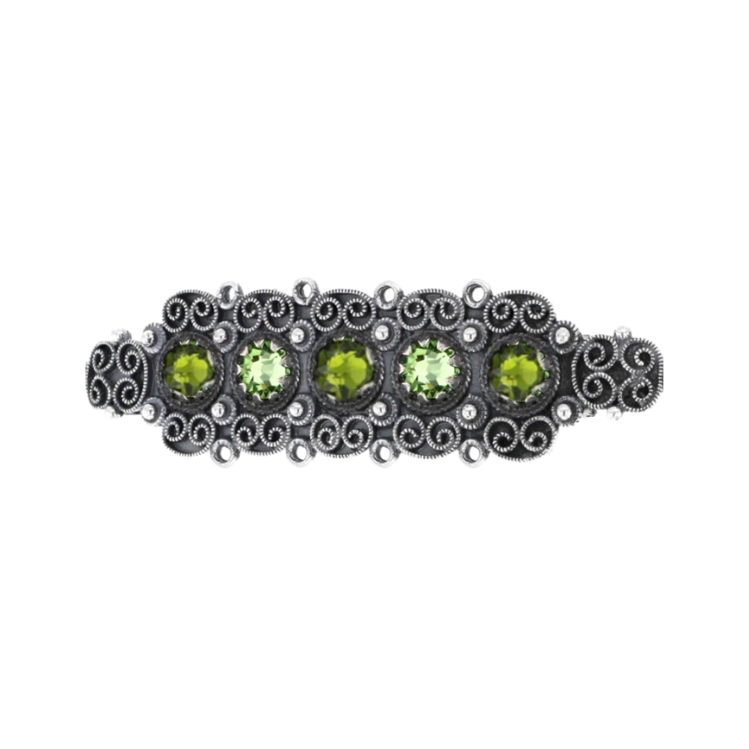 Rose hårspenne i oksidert sølv med swarovski krystaller i farge.