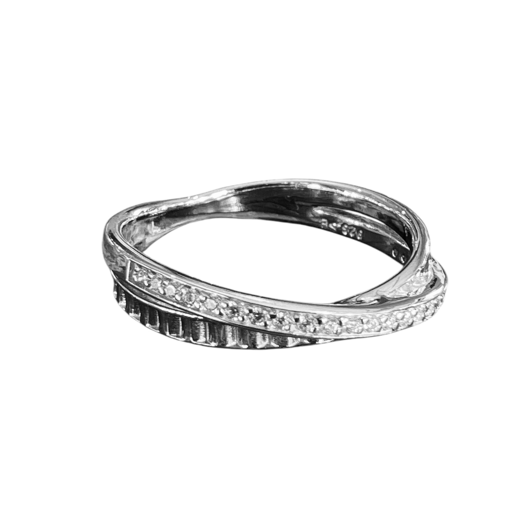 Overlappet ring i sølv med zirkonia