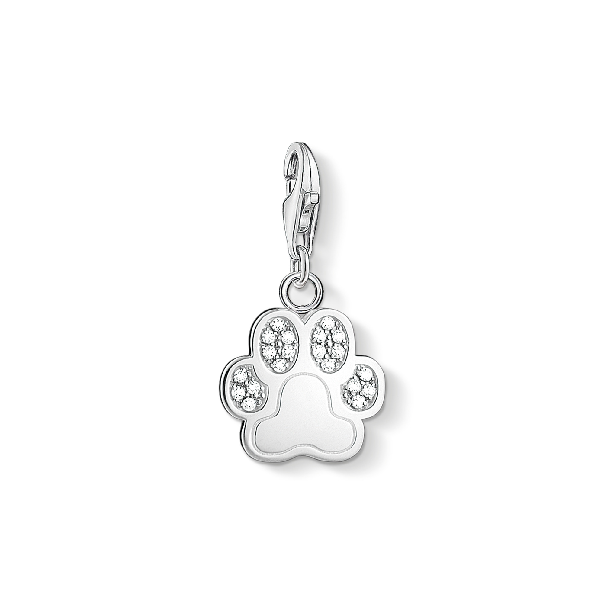 Beskrivelse Thomas Sabo Charm Club - Paw Charm Material: Sølv, 925 Stein: Cubic Zirkonia Lås: Karabinlås Høyde: ca.25,00 mm Bredde: ca.13,00 mm Vis din kjærlighet til din firbeinte venn med den glitrende Little Paw Charm laget av 925 Sterling sølv satt med zirconia pavé. |
