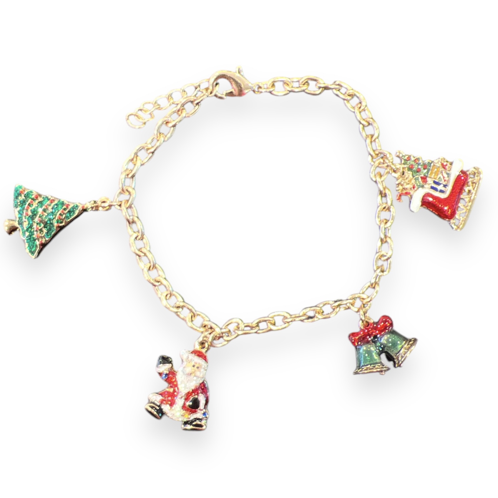 Beskrivelse Søtt armbånd med charms til hul! Passer perfekt til juleantrekket! Material: Blandingsmetal, fargelakk, uekte steiner og glitter Størrelse på charms: ca.2,5x1,5cm Lengde på armbånd: 20cm + 2cm |