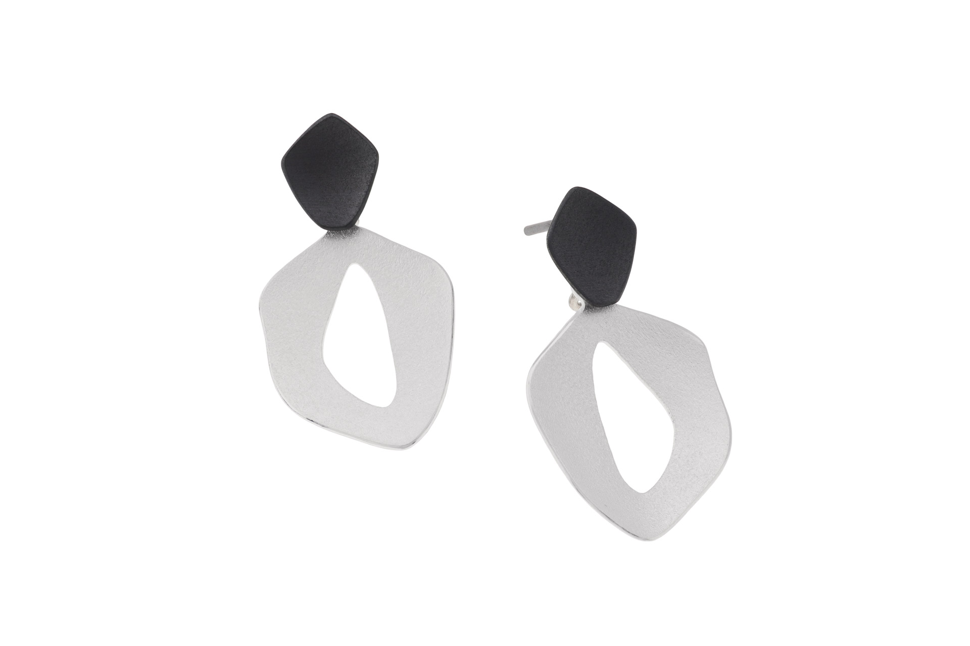 Earrings - Floral Black & Silver
