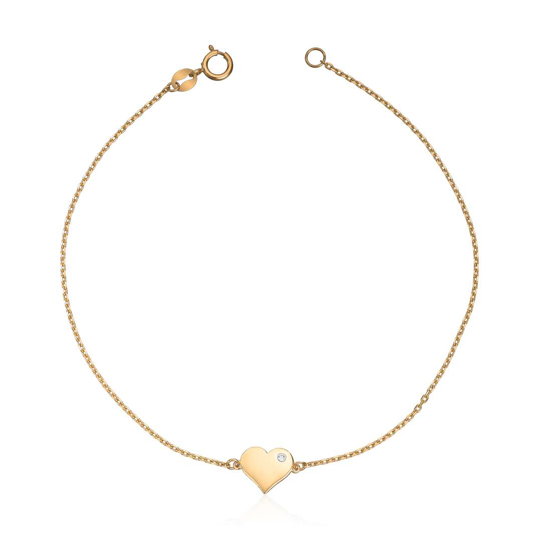 Armbånd - Hjerte og synt CZ 14K gult gull