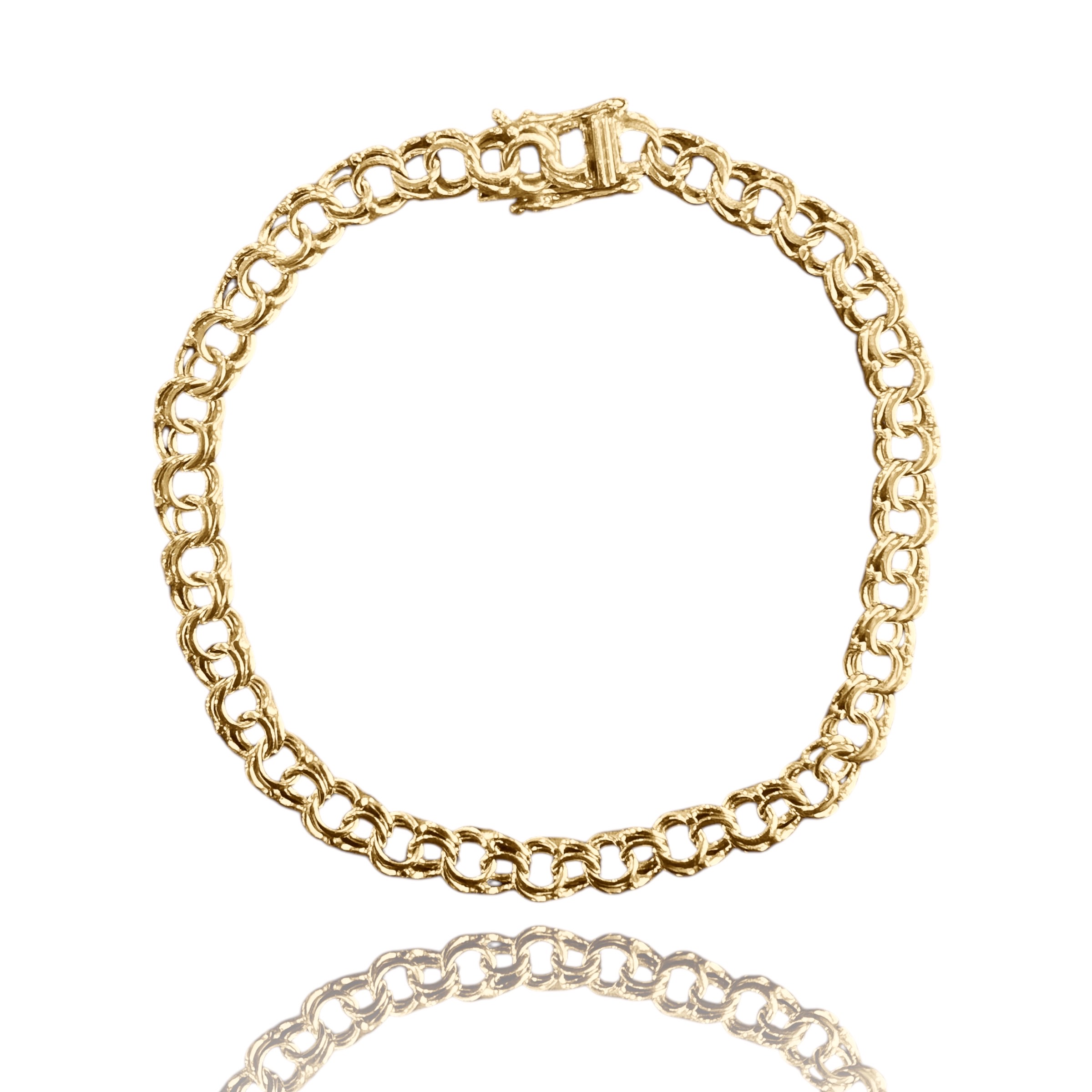 Beskrivelse Dette er smykker som har vært brukt, noe som gjør produktene rimligere enn å kjøpe det nytt. Det er derfor alltid noe slitasje og historie. Dette er et fantastisk tilbud som støtter gjenbruk og gir deg unike smykker. Alle smykkene er kvalitetsjekket, vasket, renset og polert opp av oss i butikken! Kommer i en flott eske. Material: 585 Gult Gull Bredde: 5,3mm Lengde: ca.19cm Vekt: 8,81g |