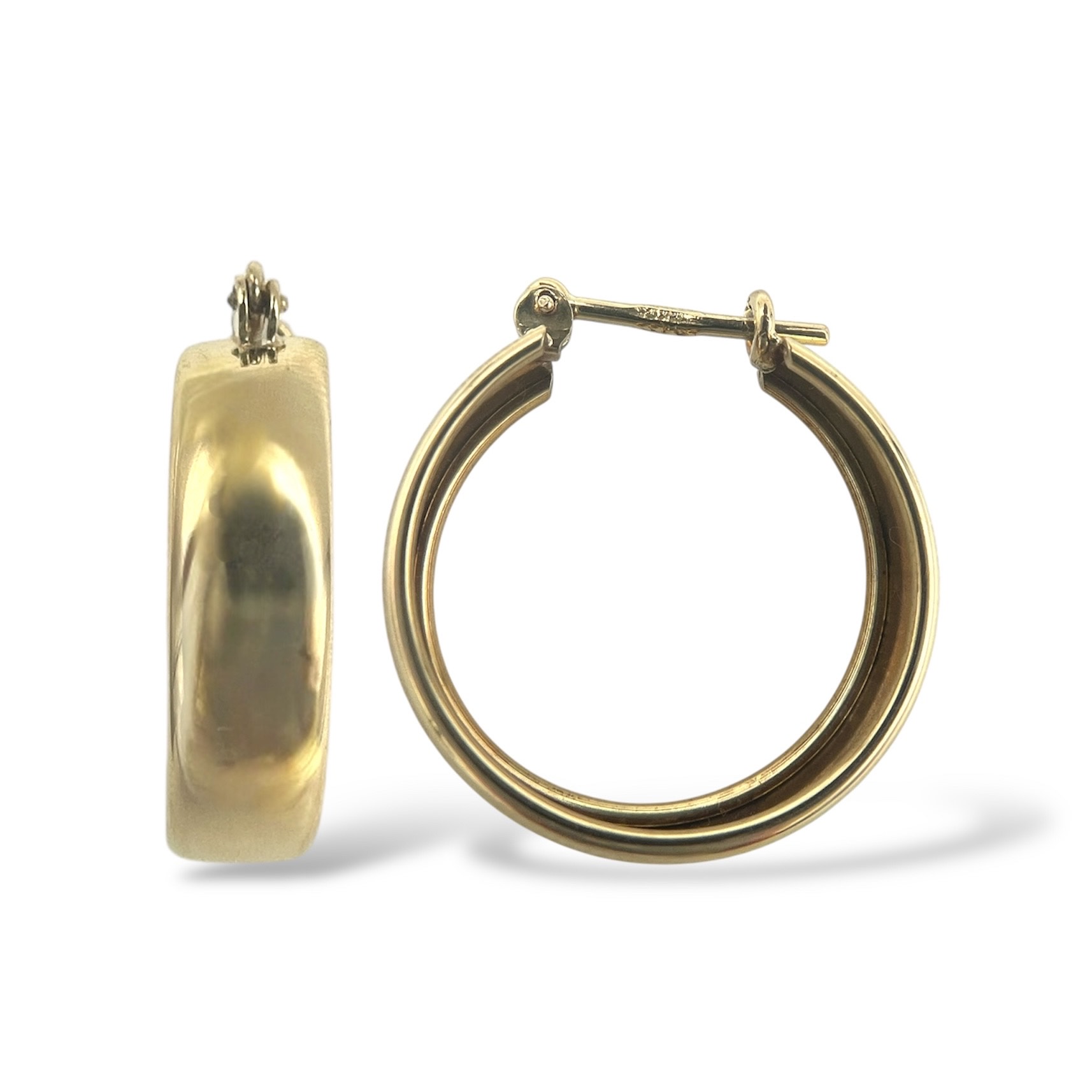Beskrivelse Dette er smykker som har vært brukt, noe som gjør produktene rimligere enn å kjøpe det nytt. Det er derfor alltid noe slitasje og historie. Dette er et fantastisk tilbud som støtter gjenbruk og gir deg unike smykker. Alle smykkene er kvalitetsjekket, vasket, renset og polert opp av oss i butikken! Kommer i en flott eske. Material: 585 Gult Gull Bredde: 5,3mm Diamater: 20mm Vekt: 3,50g Stempel: 585 & Sigurd Homstvedt sitt mesterstempel (Sigurd Homstvedt starter i 1934 gullsmedverkstedet Sigurd Homstvedt, som i sin tid var Skandinavias største innen gull- og diamantarbeid. I 2016 overtar Theodor Olsen Sølvvareverksted virksomheten som idag er Arven). |