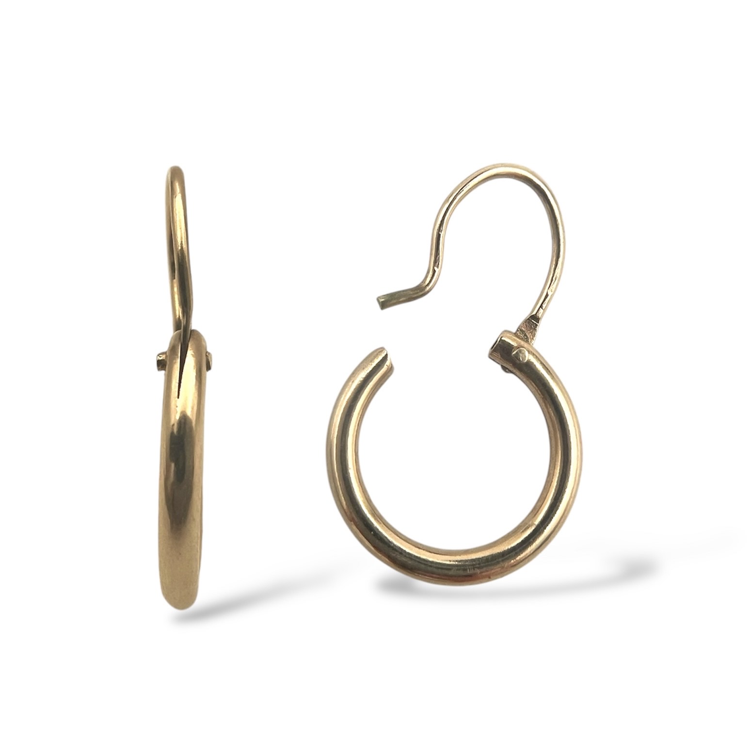 Beskrivelse Dette er smykker som har vært brukt, noe som gjør produktene rimligere enn å kjøpe det nytt. Det er derfor alltid noe slitasje og historie. Dette er et fantastisk tilbud som støtter gjenbruk og gir deg unike smykker. Alle smykkene er kvalitetsjekket, vasket, renset og polert opp av oss i butikken! Kommer i en flott eske. Material: 585 Gult Gull Bredde: 1,8mm Diamater: 14mm Vekt: 1g Stempel: Slitt 585 og uidentifiserbart ansvarsmerke. |