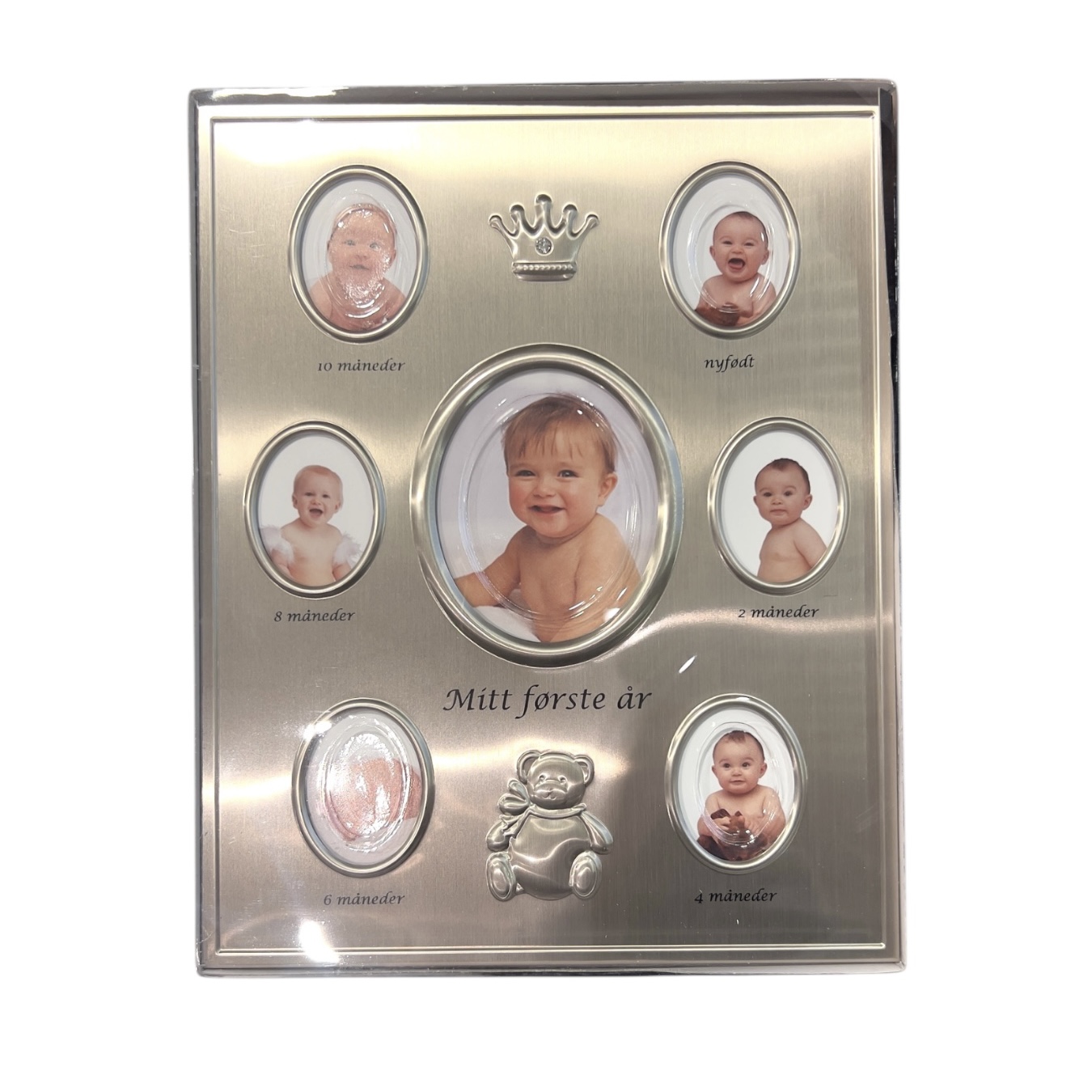 Legg inn bilder fra barnets første år, med muligheter for gravering på rammen.