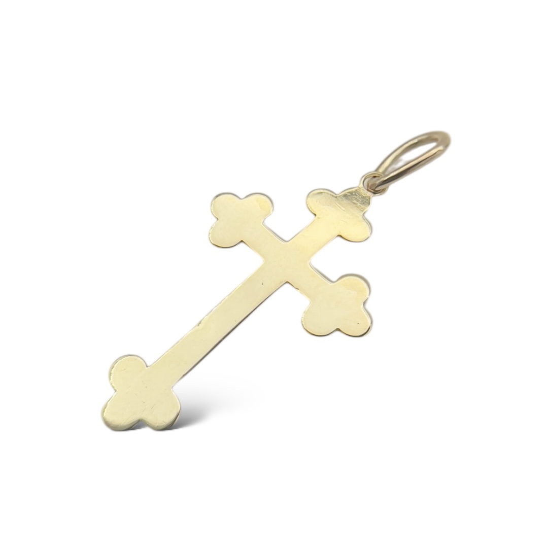Beskrivelse Dette er smykker som har vært brukt, noe som gjør produktene rimligere enn å kjøpe det nytt. Det er derfor alltid noe slitasje og historie. Dette er et fantastisk tilbud som støtter gjenbruk og gir deg unike smykker. Alle smykkene er kvalitetsjekket, vasket, renset og polert opp av oss i butikken! Kommer i en flott eske. Pent/lite brukt. Enliten bulk på langsiden av kors. Material: 585 Gult Gull Størrelse (med øsken): 28mm x13,8mm Tykkelse: 0,5mm Vekt: 0,54g Stempel: 585 & vikingskip merke, Lars Harsheim sitt mesterstempel. (Produsent av smykker på 70-90 tallet. Vår eier, Rine Negård gikk her i lære). |