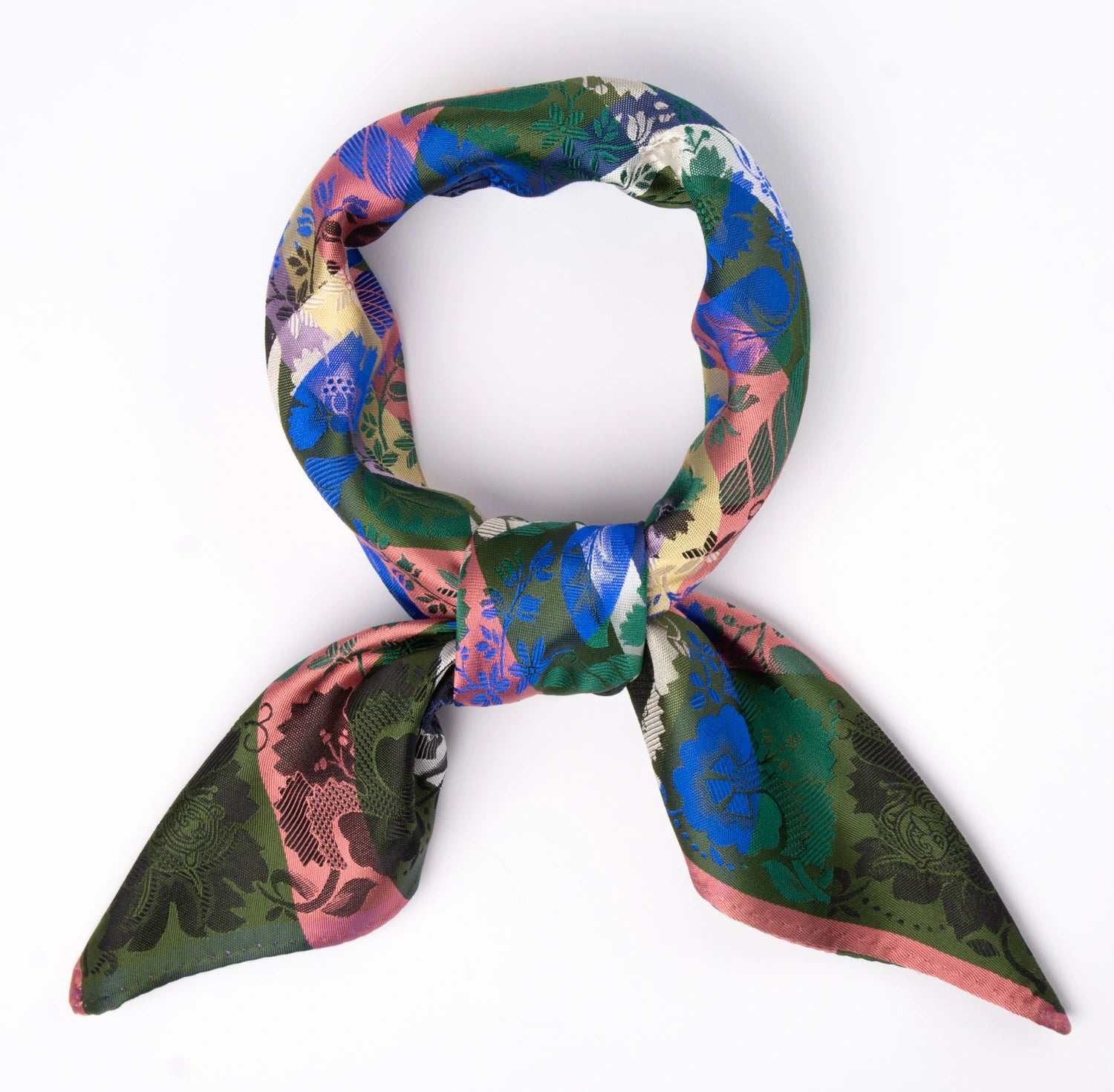 Beskrivelse Silkeskjerf til pynt, bunad og festdrakter. Silkeskjerf brukes til bunader og festdrakter over hele landet, men passer like godt som en "fargeklatt" for antrekk i hverdagen. Silke har mange gode egenskaper. Det er mykt og godt å ha på samtidig som det varmer om det er kaldt. Vi bruker kun den beste silke når vi produserer våre skjerf og de har flotte jacquard mønstre med farger som passer i tiden. Behandling: Håndvask med såpe beregnet for silke Kvalitet: 100% silke Størrelse: 70 x 70 cm Bilde lånt av leverandør. |