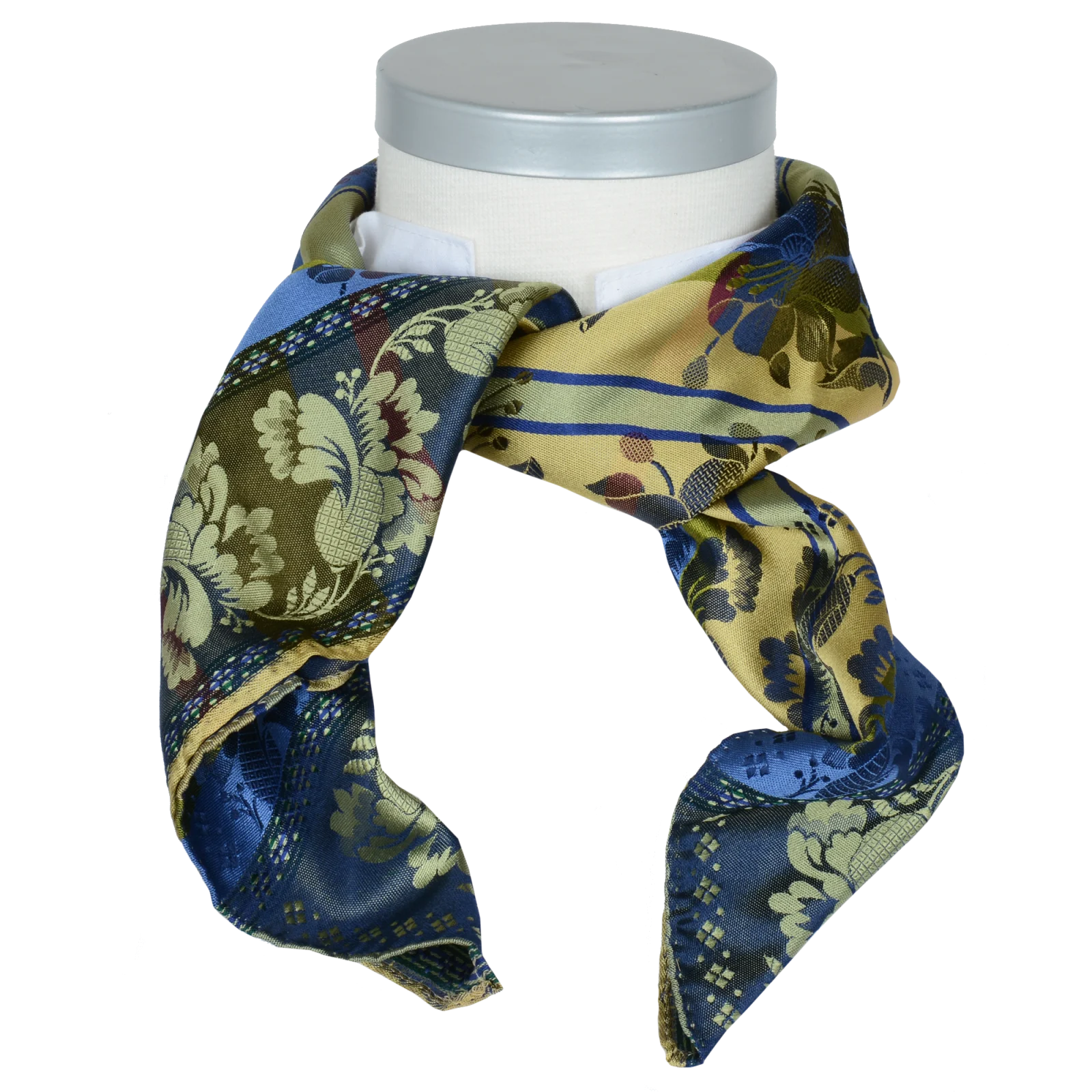 Beskrivelse Silkeskjerf til pynt, bunad og festdrakter. Silkeskjerf brukes til bunader og festdrakter over hele landet, men passer like godt som en "fargeklatt" for antrekk i hverdagen. Silke har mange gode egenskaper. Det er mykt og godt å ha på samtidig som det varmer om det er kaldt. Vi bruker kun den beste silke når vi produserer våre skjerf og de har flotte jacquard mønstre med farger som passer i tiden. Behandling: Håndvask med såpe beregnet for silke Kvalitet: 100% silke Størrelse: 70 x 70 cm Bilde lånt av leverandør. |