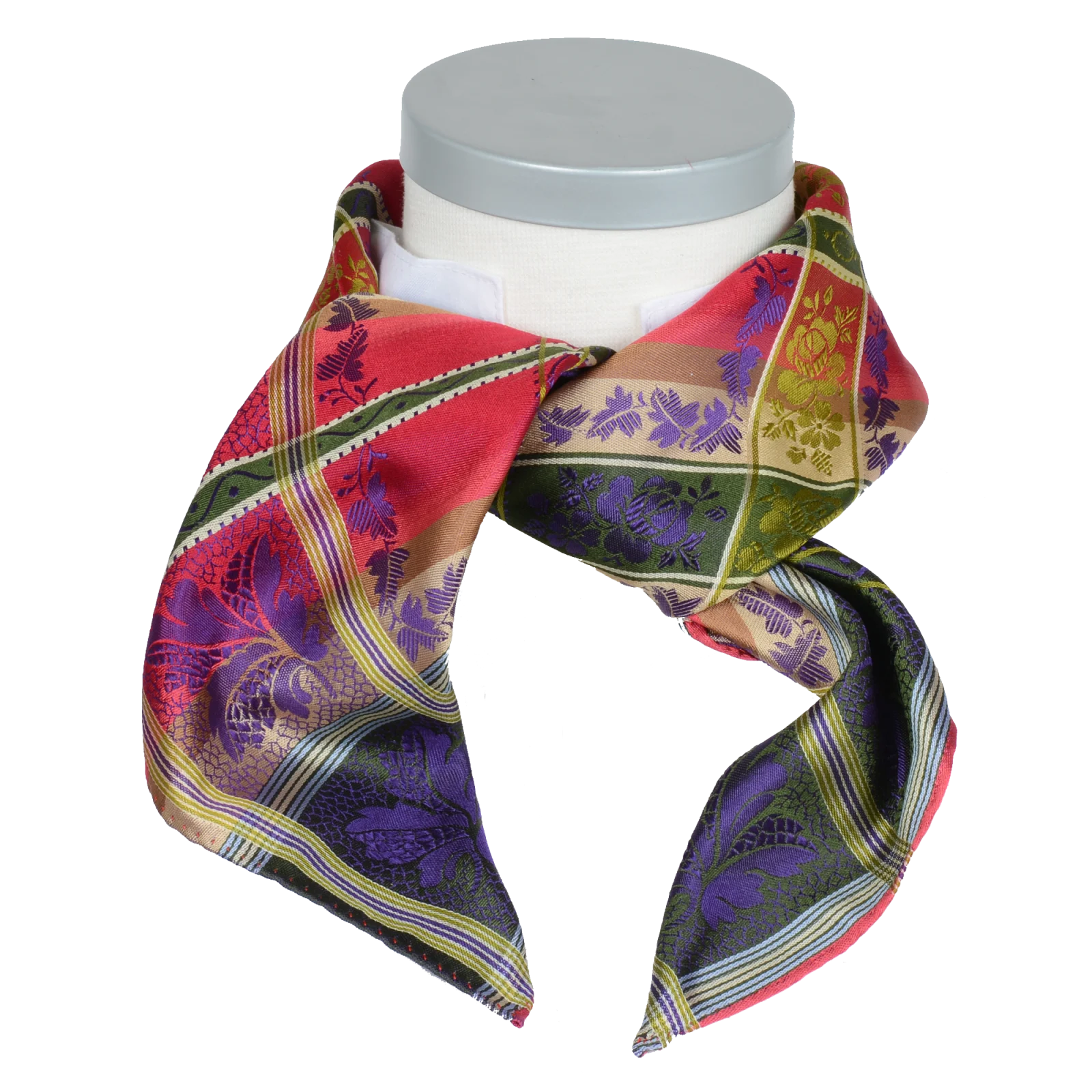Beskrivelse Silkeskjerf til pynt, bunad og festdrakter. Silkeskjerf brukes til bunader og festdrakter over hele landet, men passer like godt som en "fargeklatt" for antrekk i hverdagen. Silke har mange gode egenskaper. Det er mykt og godt å ha på samtidig som det varmer om det er kaldt. Vi bruker kun den beste silke når vi produserer våre skjerf og de har flotte jacquard mønstre med farger som passer i tiden. Behandling: Håndvask med såpe beregnet for silke Kvalitet: 100% silke Størrelse: 70 x 70 cm Bilde lånt av leverandør. |