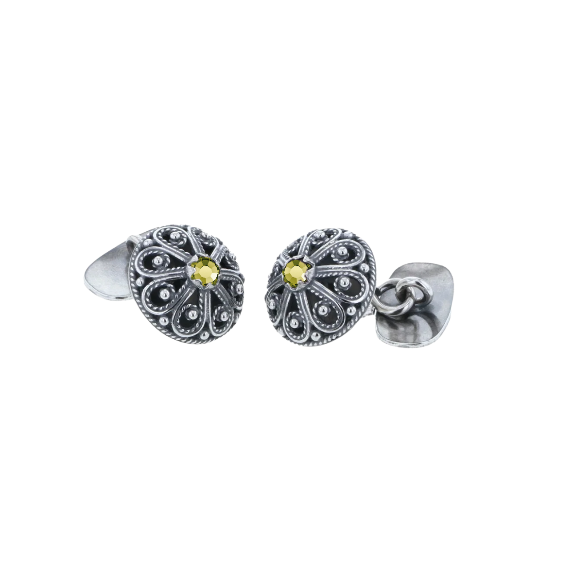 Mansjettknappar i sølv med flatbak og farge 11, oliven.