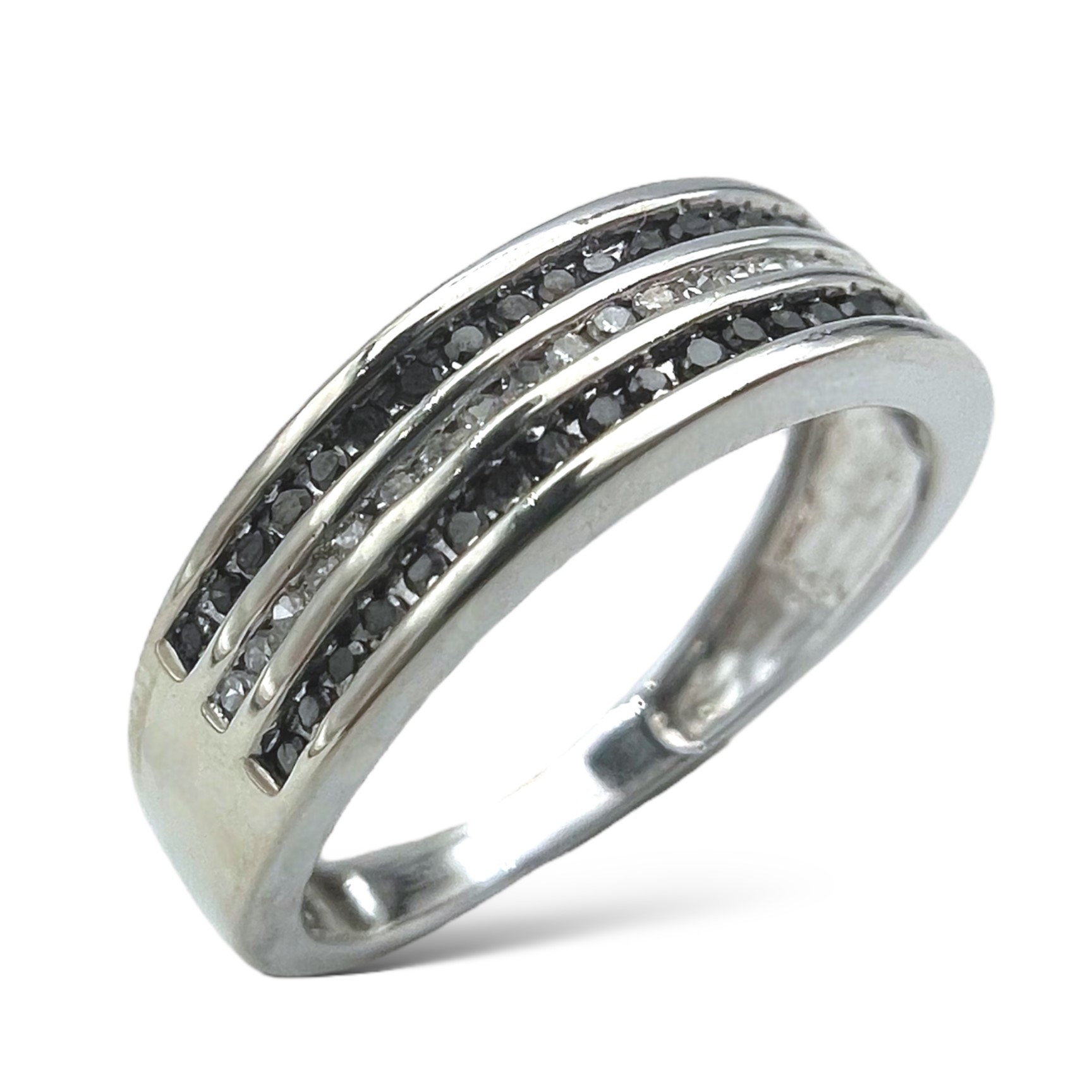 Beskrivelse Dette er smykker som har vært brukt, noe som gjør produktene rimligere enn å kjøpe det nytt. Det er derfor alltid noe slitasje og historie. Dette er et fantastisk tilbud som støtter gjenbruk og gir deg unike smykker. Alle smykkene er kvalitetsjekket, vasket, renset og polert opp av oss i butikken! Kommer i en flott eske. Material: 585 Hvitt gull Bredde på skinne: 2,1mm - 5,3mm Høyde på ring (toppdel): 1,8mm Vekt: 2,75g Stein: Diamanter og svarte diamanter, 69 stk. Ring størrelse: 51 Stempel: 585 & BX, Bjørklund kjedebutikken sitt ansvarstempel. |