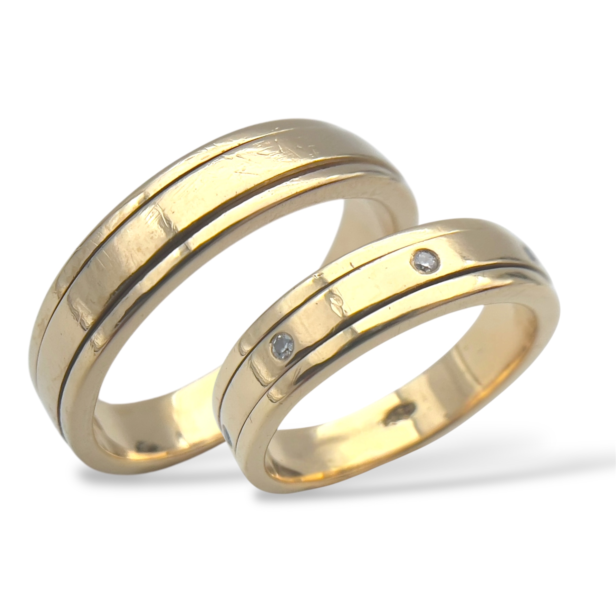 Beskrivelse Dette er smykker som har vært brukt, noe som gjør produktene rimligere enn å kjøpe det nytt. Det er derfor alltid noe slitasje og historie. Dette er et fantastisk tilbud som støtter gjenbruk og gir deg unike smykker. Alle smykkene er kvalitetsjekket, vasket, renset og polert opp av oss i butikken! Kommer i en flott eske. Brukte ringer, noen hakk og riper. Selges som et par!!! Material: 750 Gult Gull Bredde: 5,9mm Størrelse: 59 (6,3g) & 55 (6,3g) med 8 diamanter. Vekt totalt: 12,6g Ring inni er løs og snurrer rundt. Stempel: 750 & ikke noe ansvarstempel. |