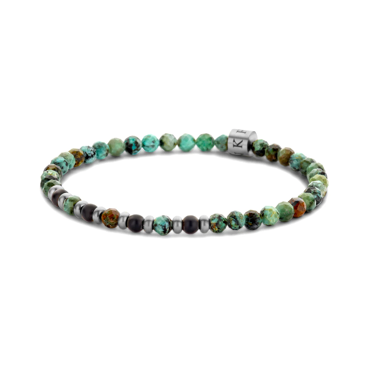 Beskrivelse Dette armbåndet er laget av en kolleksjon av natursteiner og svarte agatsteiner som utstråler moderne sjarm og tidløs appell. Armbåndet er 18,5 cm langt og perlene har en diameter på 4 mm. |