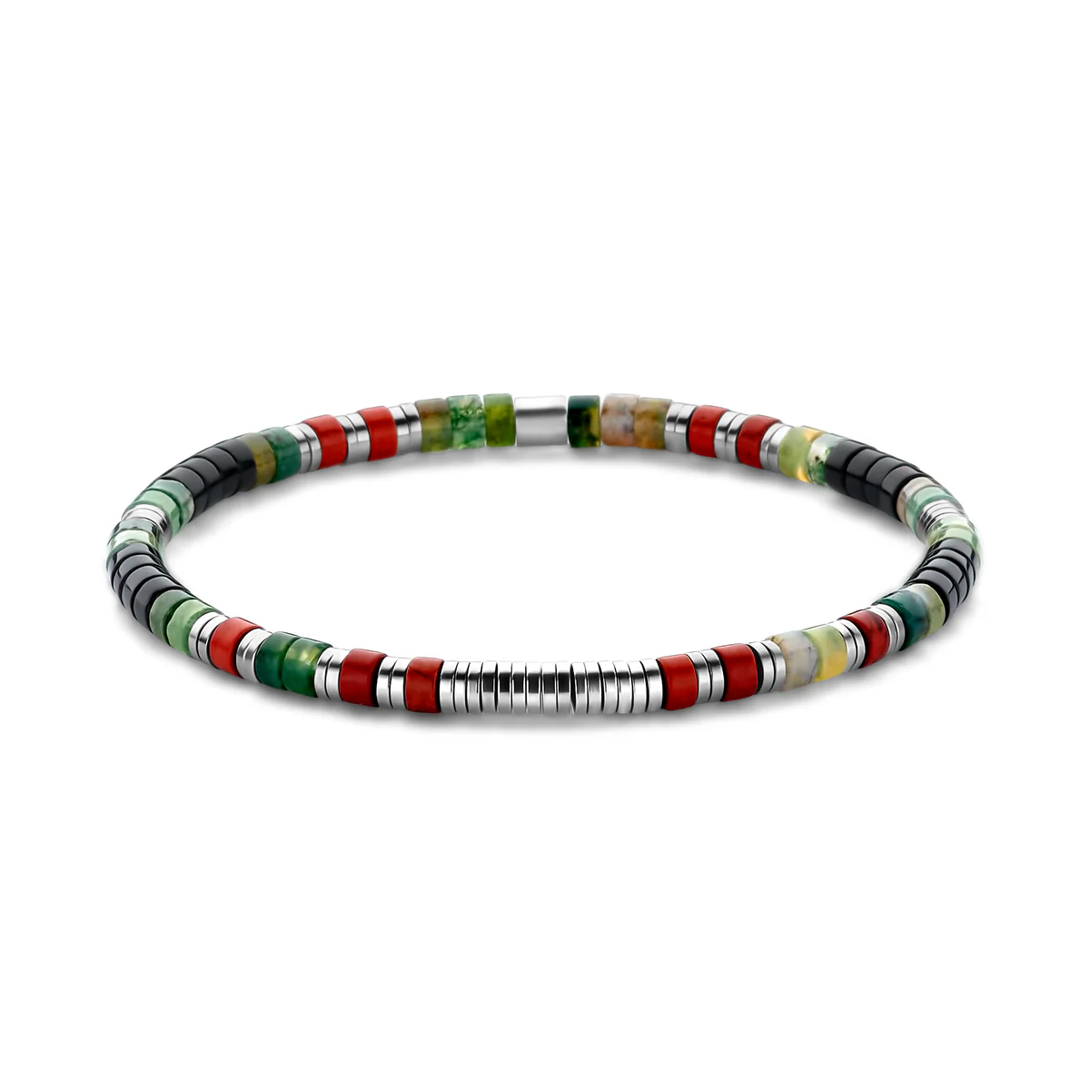 Beskrivelse Dette Frank 1967-armbåndet er laget av høykvalitetsstål og er utsmykket med svart agat, moseagat og rød stein med flate perler (4 x 2 mm) for et moderne og naturlig preg. IPS-ståldelene gir styrke og stil, noe som gjør det perfekt for både fritids- og forretningsantrekk. Bruk det alene, eller miks og match med andre armbånd for å skape en særegen stil som er helt din egen. |