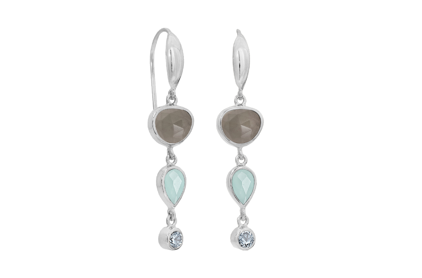 7x6 mm grå månestein, 6x4 mm kalsedon, 2,5 mm skyblå topas