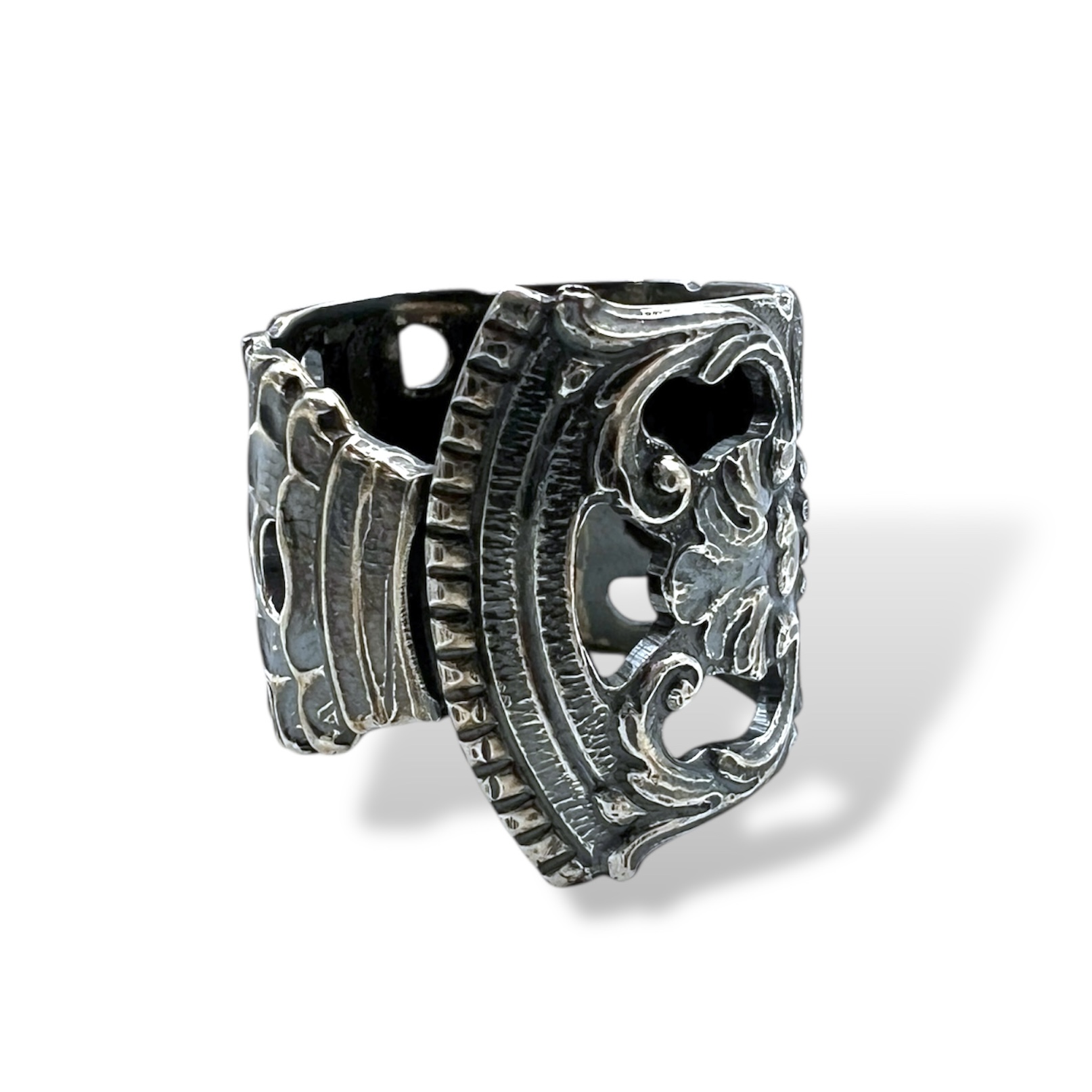 Beskrivelse Håndlaget på Klosterfoss Smykkeverksted. Håndtak fra en spiseskje gjort om til et regulerbart blank oksidert ring, laget av håndtaket. Overflate: Oksidert Material: 830 sølv Kan reguleres ut fra str.60 Historien bak serien! Vi er stolte over å kunne skape noe nytt av sølv med unik og spennende historie. Dette gir sølvbestikk nytt liv! Disse er perfekte til feks en bunad eller festdrakt. |
