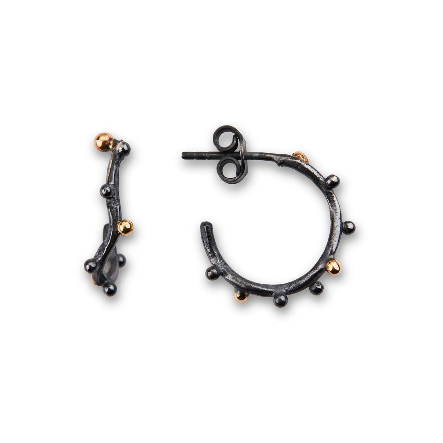 Beskrivelse Om smykke: Håndsmidd i 925 sterling sølv og 14 karat gull med gull- og sølvkuler. Material: Sølv – 925 Sterling, Gull - 585 14kt. Overflate: Oksidert Diameter: 15mm Kolleksjon: Windsor |
