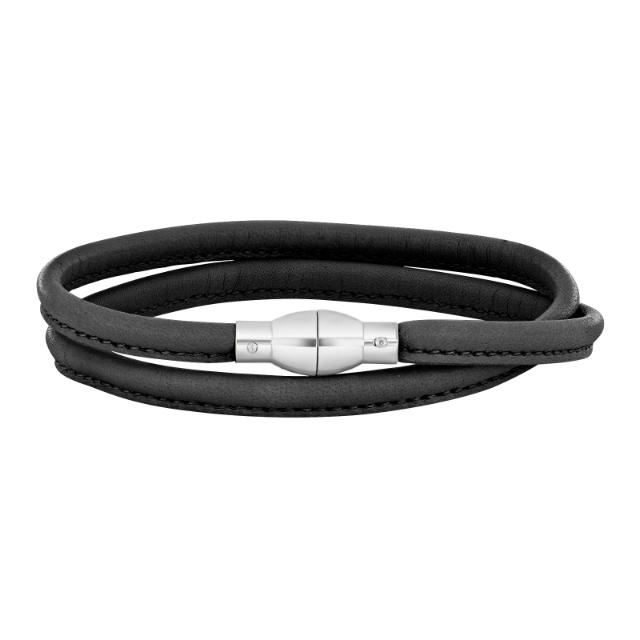 Svart lærarmbånd med sølv magnetlås