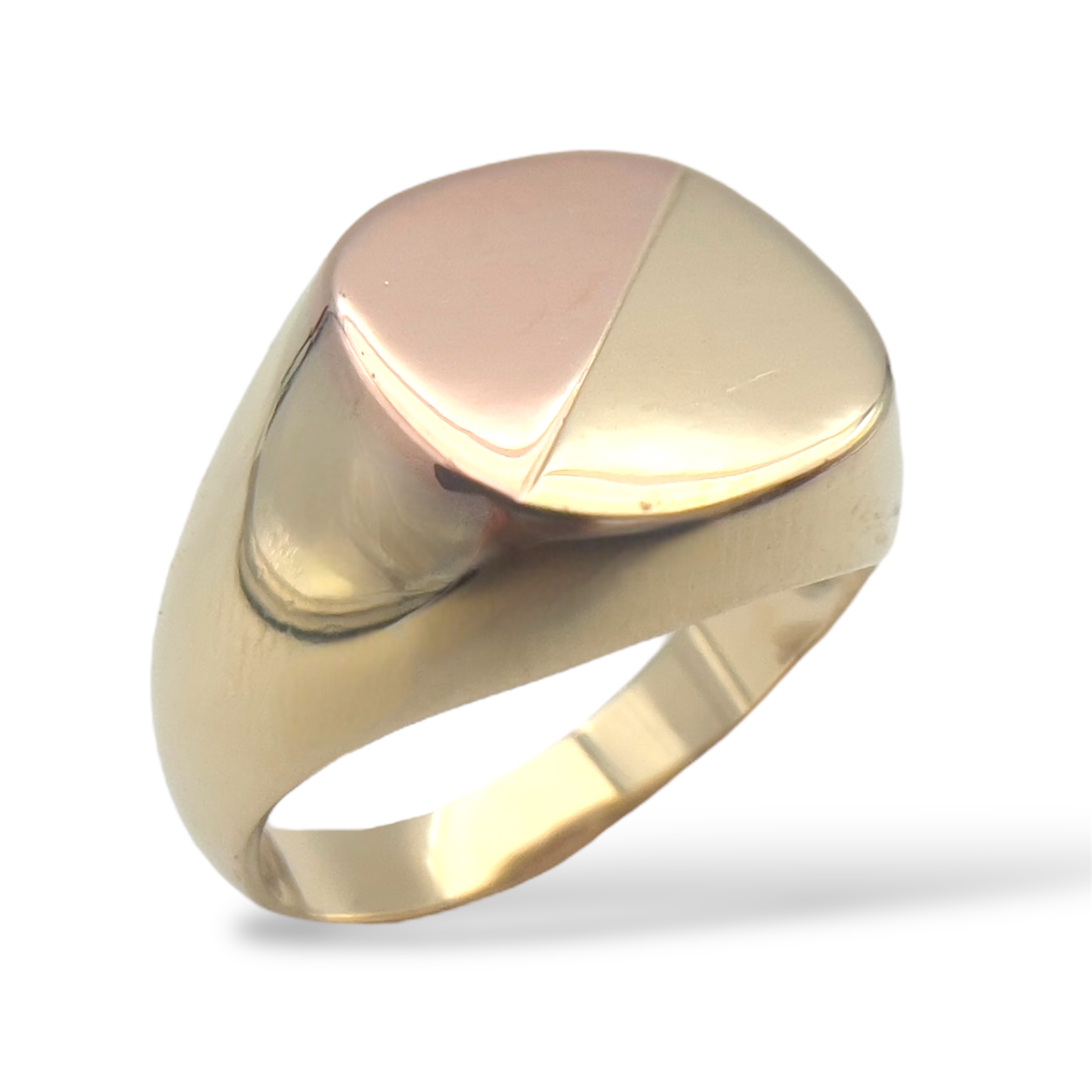 Beskrivelse Dette er smykker som har vært brukt, noe som gjør produktene rimligere enn å kjøpe det nytt. Det er derfor alltid noe slitasje og historie. Dette er et fantastisk tilbud som støtter gjenbruk og gir deg unike smykker. Alle smykkene er kvalitetsjekket, vasket, renset og polert opp av oss i butikken! Kommer i en flott eske. Noen bruksriper. Material: 585 Gult gull & rose gull (syretestet til å holde 14k/585) Bredde ringskinne: 2,2mm - 15mm Plate: 4,4mm x 13,5mm Vekt: 10,09g Ring størrelse: Stor 63 Stempel: Ikke tydelig gullstempel (syretestet til å holde 14k/585), MK og diverese utydelige stempler. |
