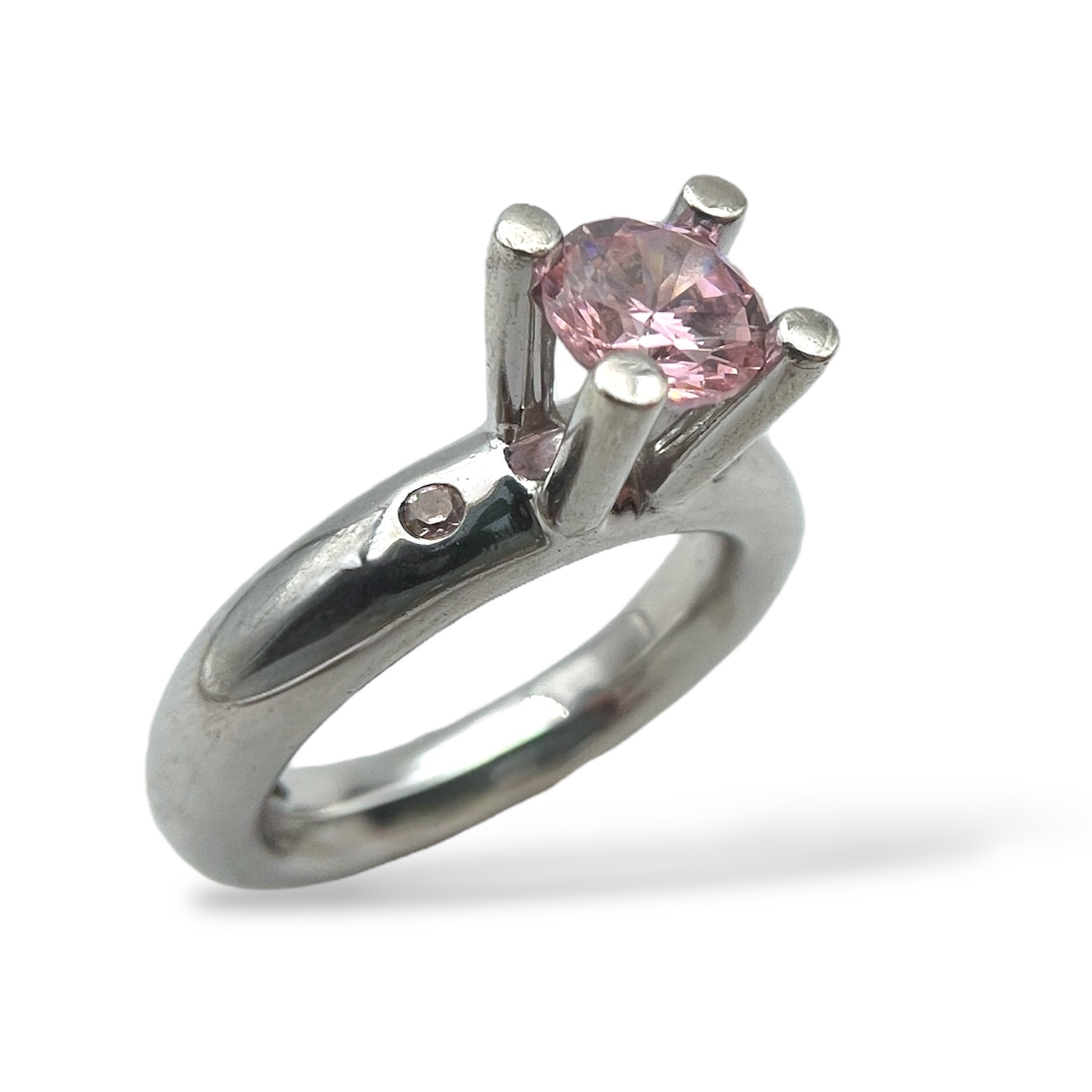 Beskrivelse Dette er smykker som har vært brukt, noe som gjør produktene rimligere enn å kjøpe det nytt. Det er derfor alltid noe slitasje og historie. Dette er et fantastisk tilbud som støtter gjenbruk og gir deg unike smykker. Alle smykkene er kvalitetsjekket, vasket, renset og polert opp av oss i butikken! Kommer i en flott eske. Noen riper. Material: 925 Sølv Bredde ringskinne: 5,6mm Fatning: 6,8mm x 7,4mm Stein: Cubic zirkonia,rosa Vekt: 9,85g Ring størrelse: 54 Stempel: 925 & M.G., Mestergull AL sitt mesterstempel. |