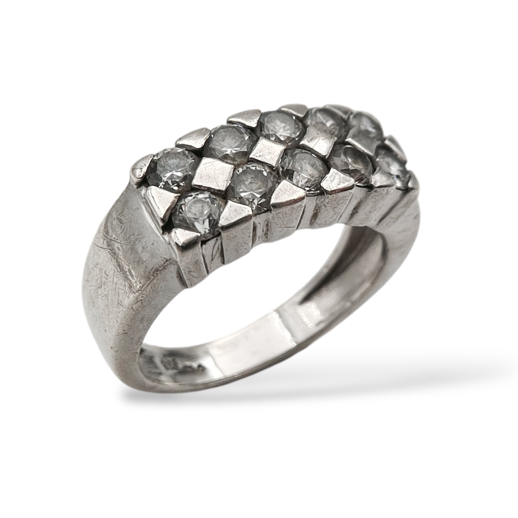 Beskrivelse Dette er smykker som har vært brukt, noe som gjør produktene rimligere enn å kjøpe det nytt. Det er derfor alltid noe slitasje og historie. Dette er et fantastisk tilbud som støtter gjenbruk og gir deg unike smykker. Alle smykkene er kvalitetsjekket, vasket, renset og polert opp av oss i butikken! Kommer i en flott eske. Noen riper. Material: 925 Sølv Bredde ringskinne: ca.4mm - 6mm Stein: Cubic zirkonia, blank Vekt: 3,54g Ring størrelse: 52 Stempel: 925 & M.G., Mestergull AL sitt mesterstempel. |