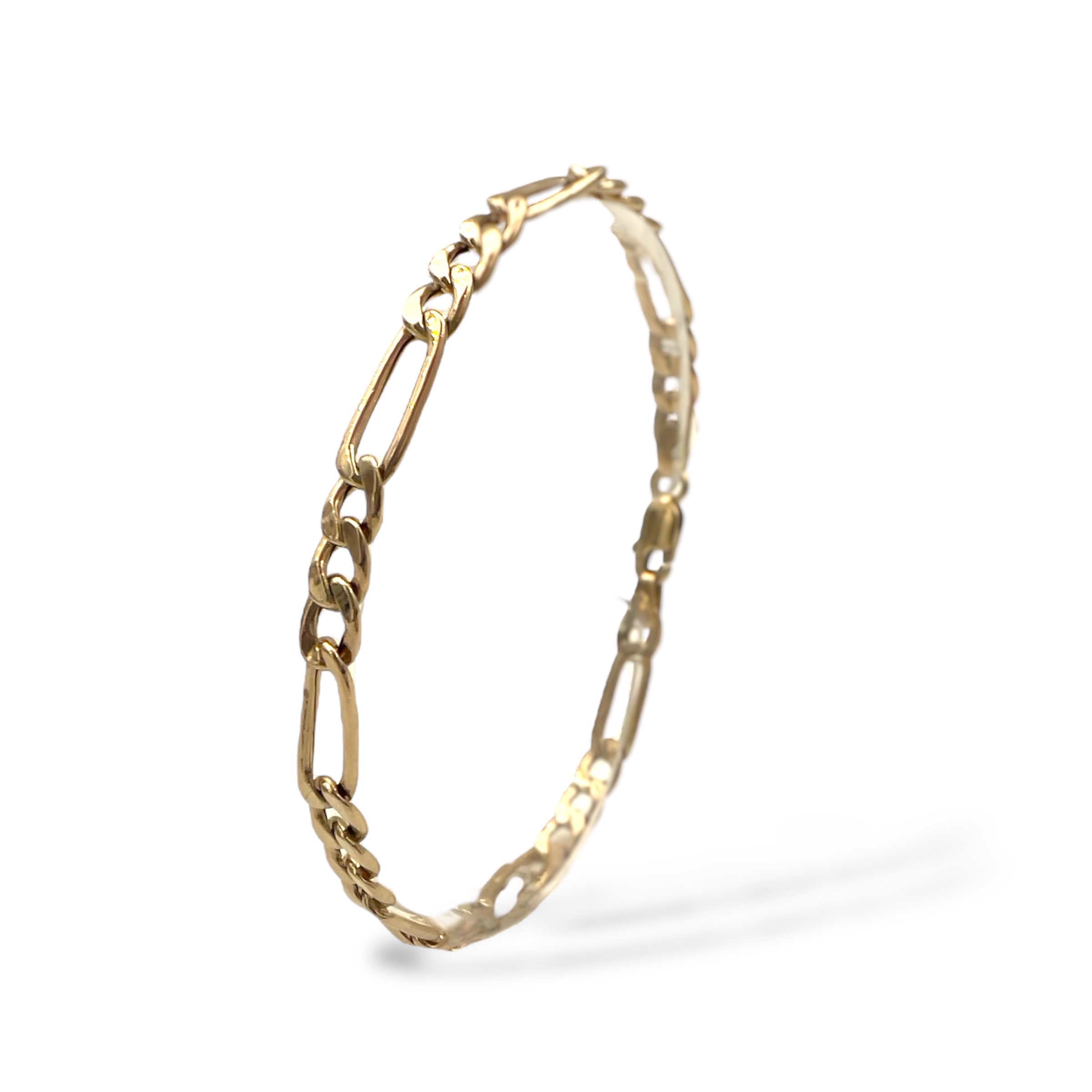 Beskrivelse Dette er smykker som har vært brukt, noe som gjør produktene rimligere enn å kjøpe det nytt. Det er derfor alltid noe slitasje og historie. Dette er et fantastisk tilbud som støtter gjenbruk og gir deg unike smykker. Alle smykkene er kvalitetsjekket, vasket, renset og polert opp av oss i butikken! Kommer i en flott eske. Denne er hol, så noen små bulker/merker. Material: 375 Gult Gull, 9k Bredde: 4,4mm Lengde: ca.19cm Vekt: 2,55g Stempel: 375 & ikke noe tydelig mesterstempel. |