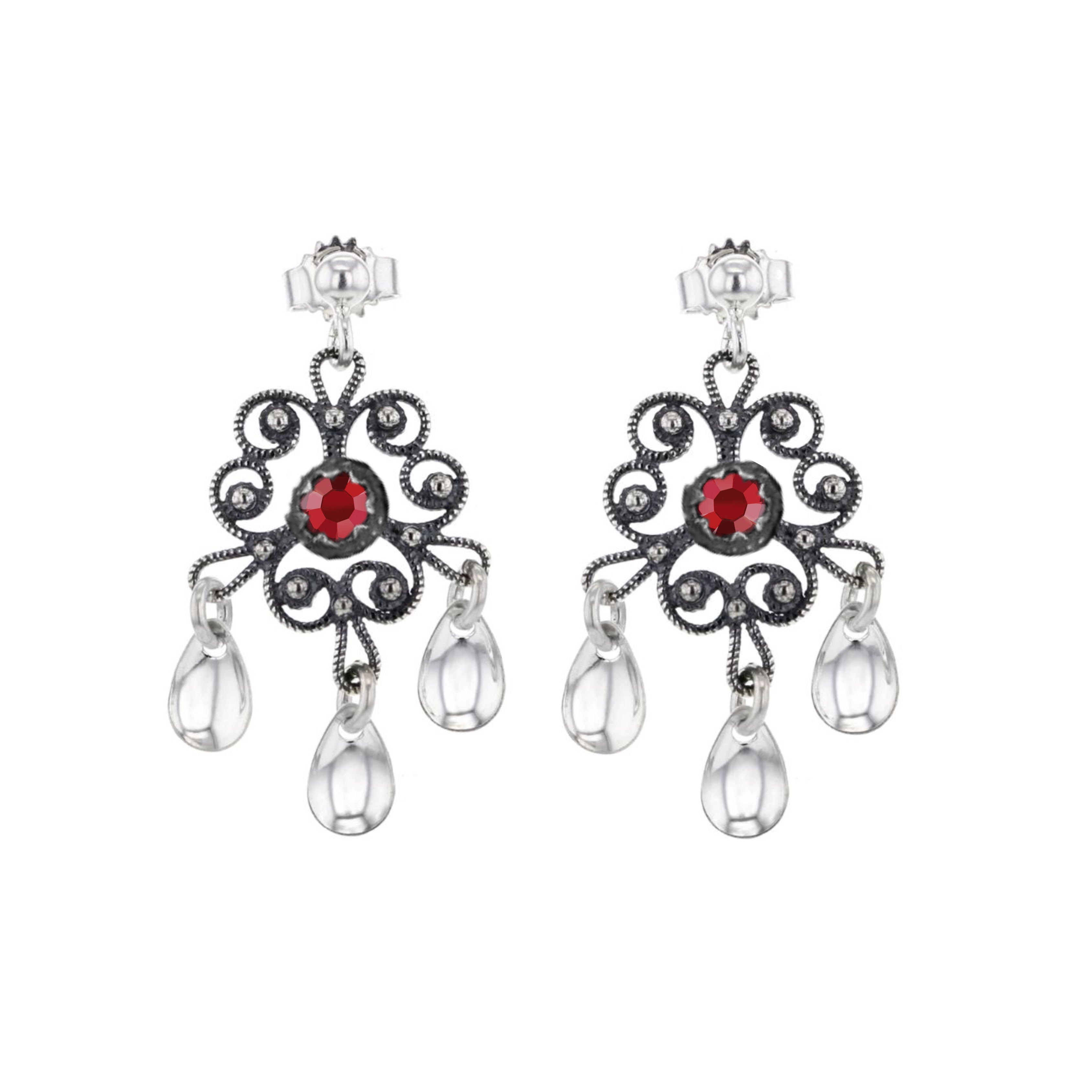 Oksidert sølv med krystall i dyp rød farge 0.