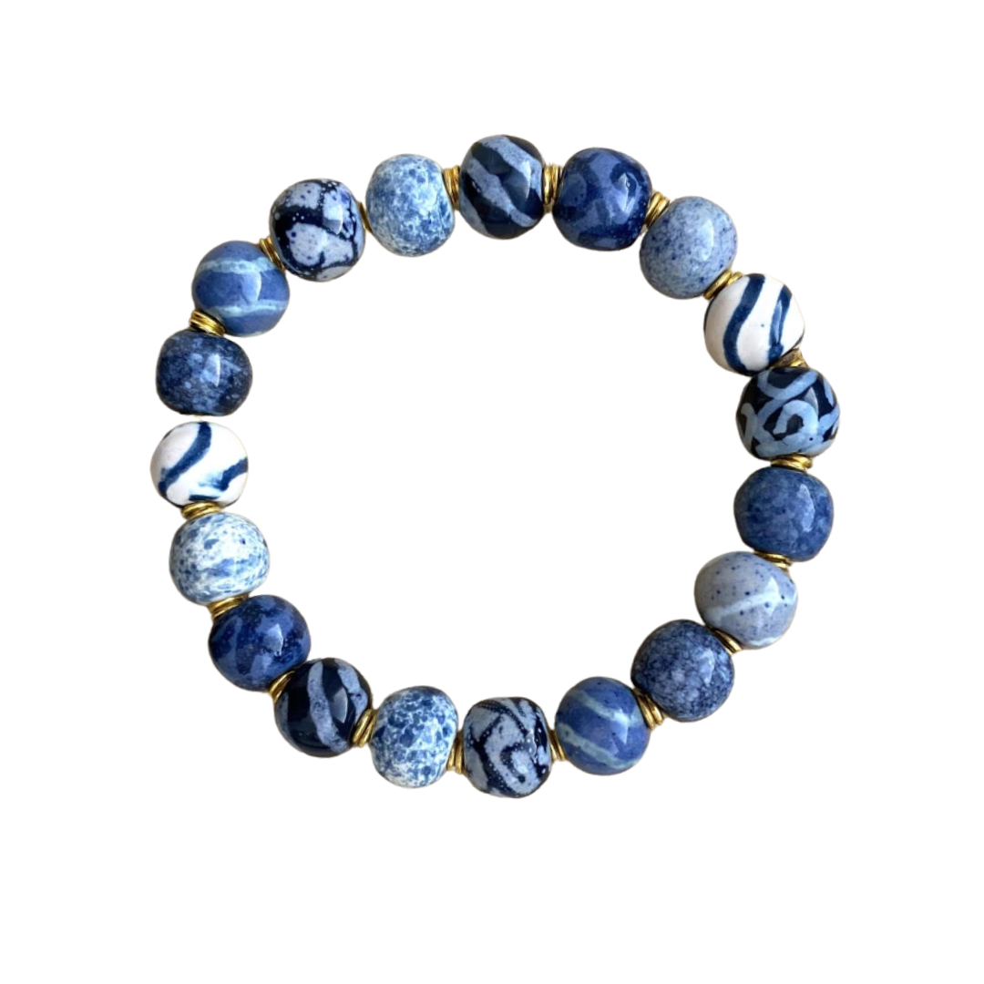PERLEARMBÅND ELASTIK - BLUE AND WHITE