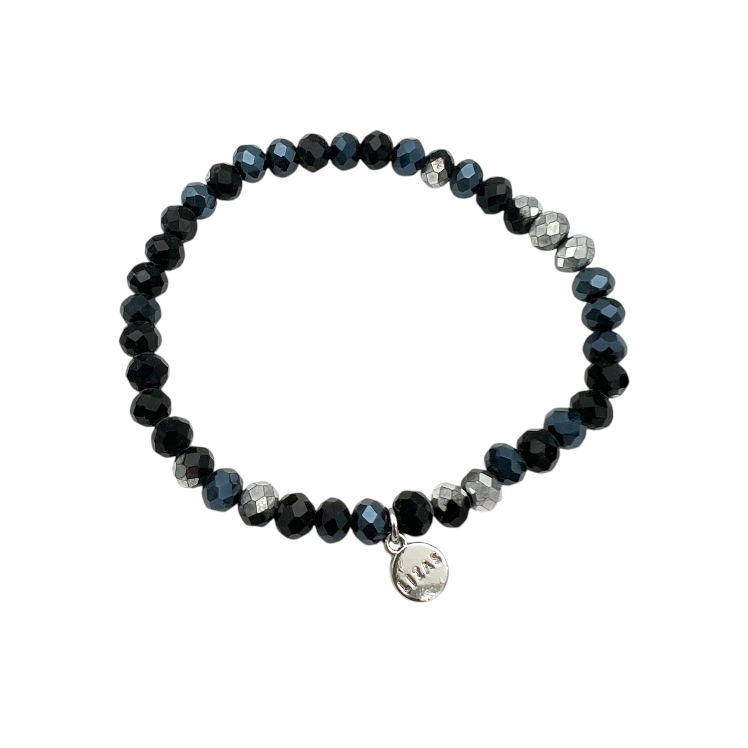 Beskrivelse Størrelse på perler: 6mm Denne i svart med sølv detaljer og sølvfarget Lizas merke. Lizas Essentials er vakre tsjekkiske krystallarmbånd i en endeløs rekke farger som kan mikses, matches og stables for en morsom, unik stil. Lizas Essentials-armbånd på strikk strekker seg for å passe de fleste håndledd. |