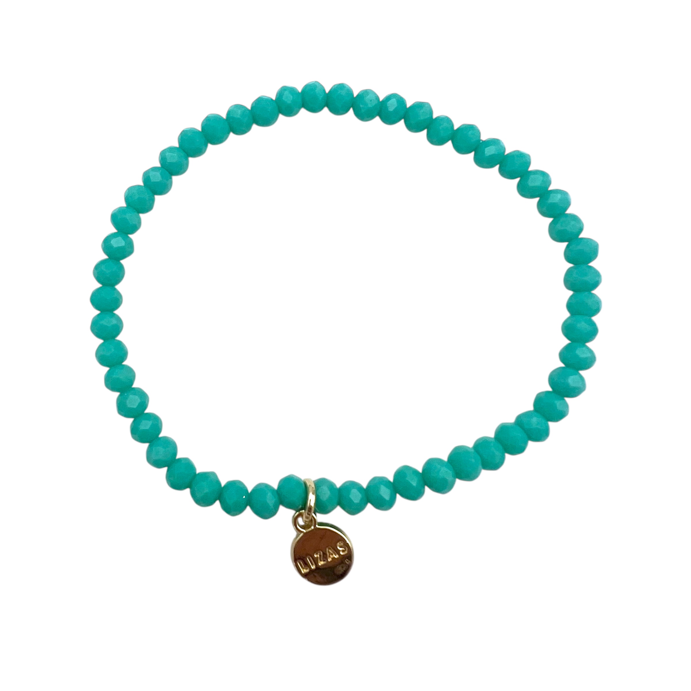 Beskrivelse Størrelse på perler: 4mm Denne er med ugjennomsiktig sterk turkis grønne perler og sølvfarget Lizas merke. Lizas Essentials er vakre tsjekkiske krystallarmbånd i en endeløs rekke farger som kan mikses, matches og stables for en morsom, unik stil. Lizas Essentials-armbånd på strikk strekker seg for å passe de fleste håndledd. |
