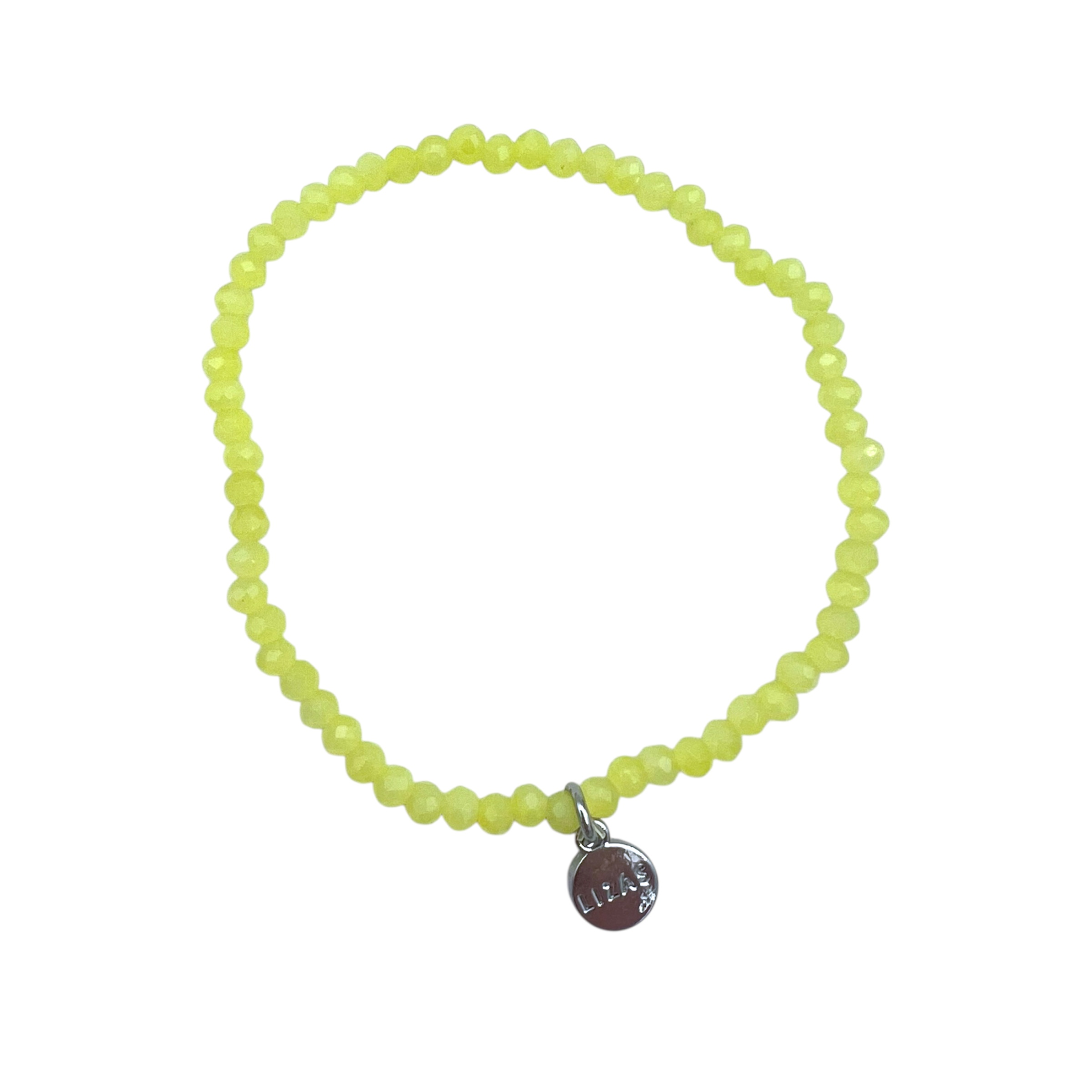 Beskrivelse Størrelse på perler: 3mm Denne er med ugjennomsiktige lysegule perler og sølvfarget Lizas merke. Lizas Essentials er vakre tsjekkiske krystallarmbånd i en endeløs rekke farger som kan mikses, matches og stables for en morsom, unik stil. Lizas Essentials-armbånd på strikk strekker seg for å passe de fleste håndledd. |