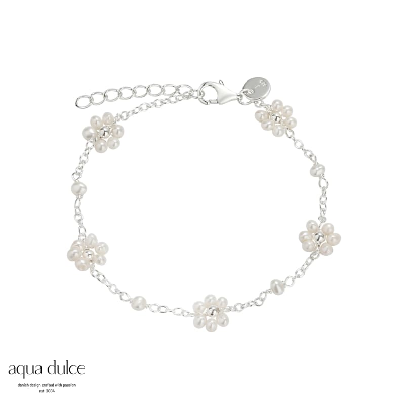 Beskrivelse Armbånd i sterling sølv med ferskvannsperler blomster & twisted kuler. - 100% nikkelfri - 925 Sterling sølv - Lengde: 17cm +3cm |