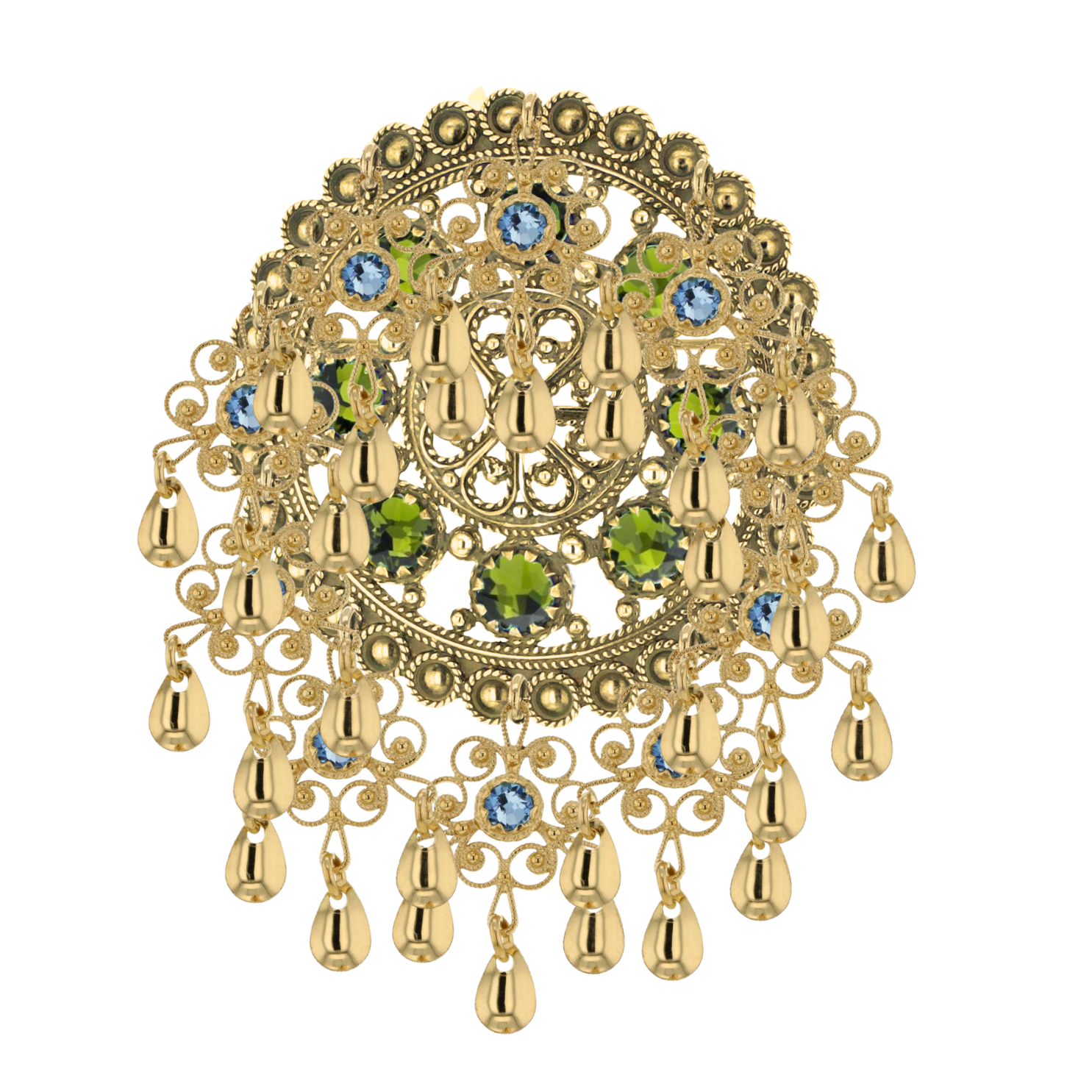 Sølje med midtrose og nyreheng - Oliven 11 & Lyseblå 13