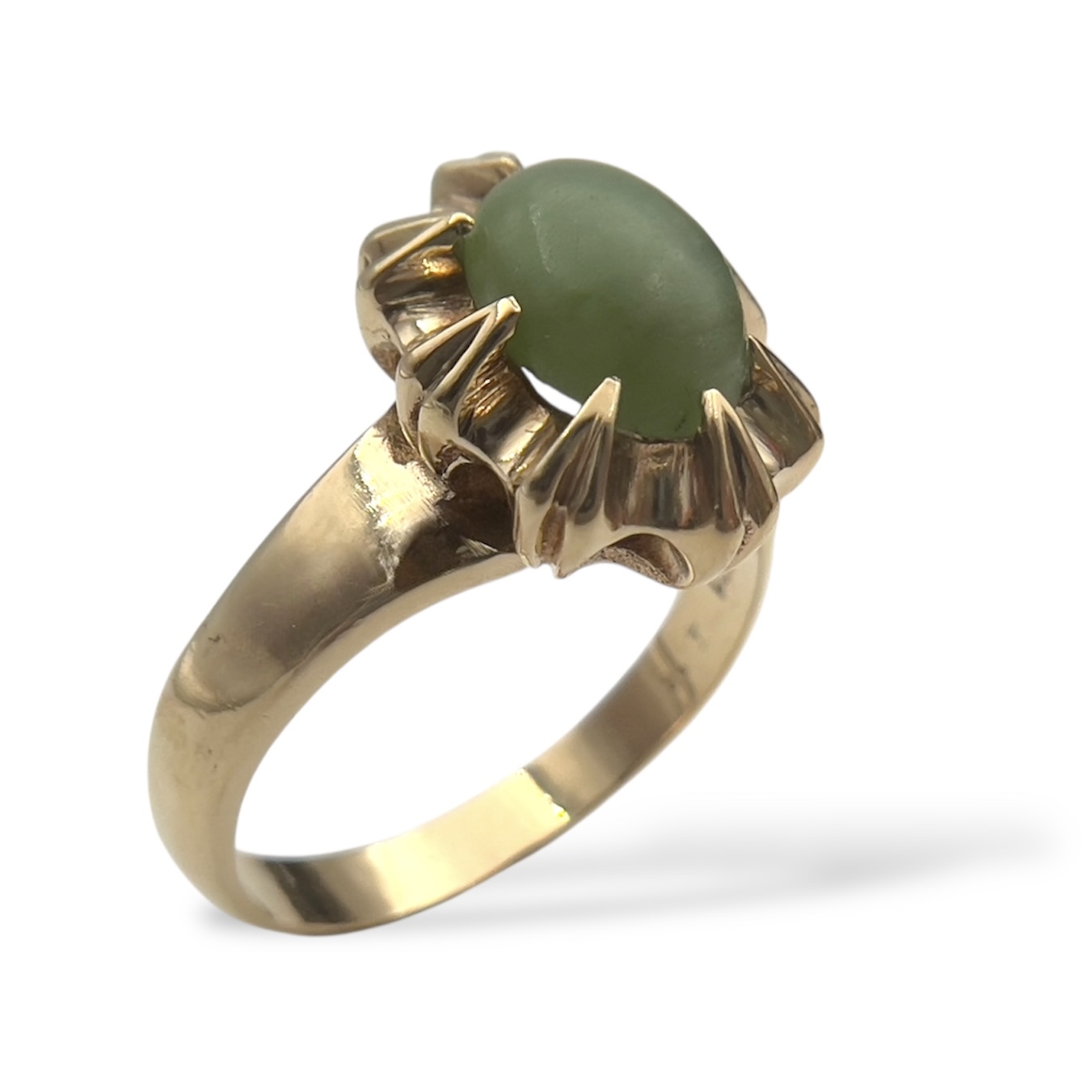 Beskrivelse Dette er smykker som har vært brukt, noe som gjør produktene rimligere enn å kjøpe det nytt. Det er derfor alltid noe slitasje og historie. Dette er et fantastisk tilbud som støtter gjenbruk og gir deg unike smykker. Alle smykkene er kvalitetsjekket, vasket, renset og polert opp av oss i butikken! Kommer i en flott eske. Tilstad: Normal bruktslitasje, noen hakk i skinn og litt matt stein. Material: 375 gult gull (Holder under 14k på syretest og over 8k) Bredde ringskinne: 3mm Topp: 13mm x 10mm Stein: mulig jade Vekt: 4g Ring størrelse: 56 Stempel: slitte stempler, vanskelig å tyde. Under 14k på syretest og over 8k. |