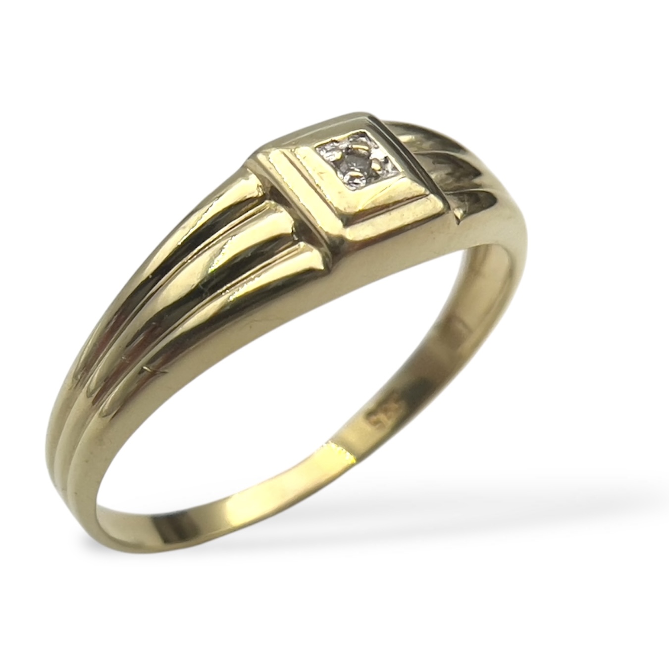Beskrivelse Dette er smykker som har vært brukt, noe som gjør produktene rimligere enn å kjøpe det nytt. Det er derfor alltid noe slitasje og historie. Dette er et fantastisk tilbud som støtter gjenbruk og gir deg unike smykker. Alle smykkene er kvalitetsjekket, vasket, renset og polert opp av oss i butikken! Kommer i en flott eske. Tilstad: Normal bruktslitasje, pent brukt. Material: 585 gult gull Bredde ringskinne: 1,5mm Topp: 5mm Stein: En liten diamant Vekt: 1,15g Ring størrelse: 49 Stempel: 585 & ikke noe ansvarstempel. |